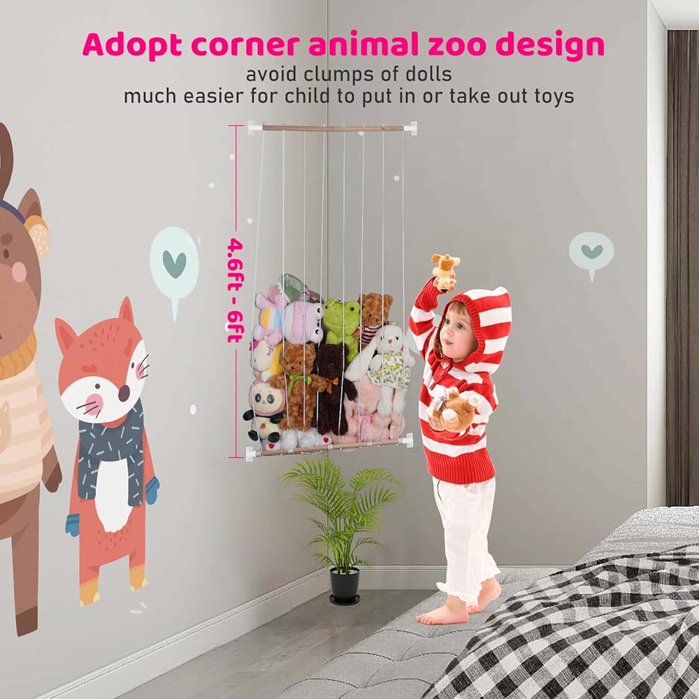 سعة تخزين كبيرة للألعاب على الحائط: مع أقصى حجم يصل إلى 26 انش × 11.2 انش × 71 انش، يمكن لأرجوحة الحيوانات المحشوة هذه حمل الكثير من ألعاب الحيوانات المحشوة، والحفاظ على ألعاب طفلك منظمة وأنيقة. أرجوحة تخزين الألعاب ذات السعة الكبيرة هي خيارك الأفضل لتخزين غرفة الأطفال.