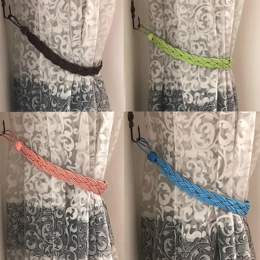 Simple use :Countryside knitted wraps around the curtain or drape and holding the curtain in place without having to be connected to a wall.You can directly tied in curtains or use with Hook.