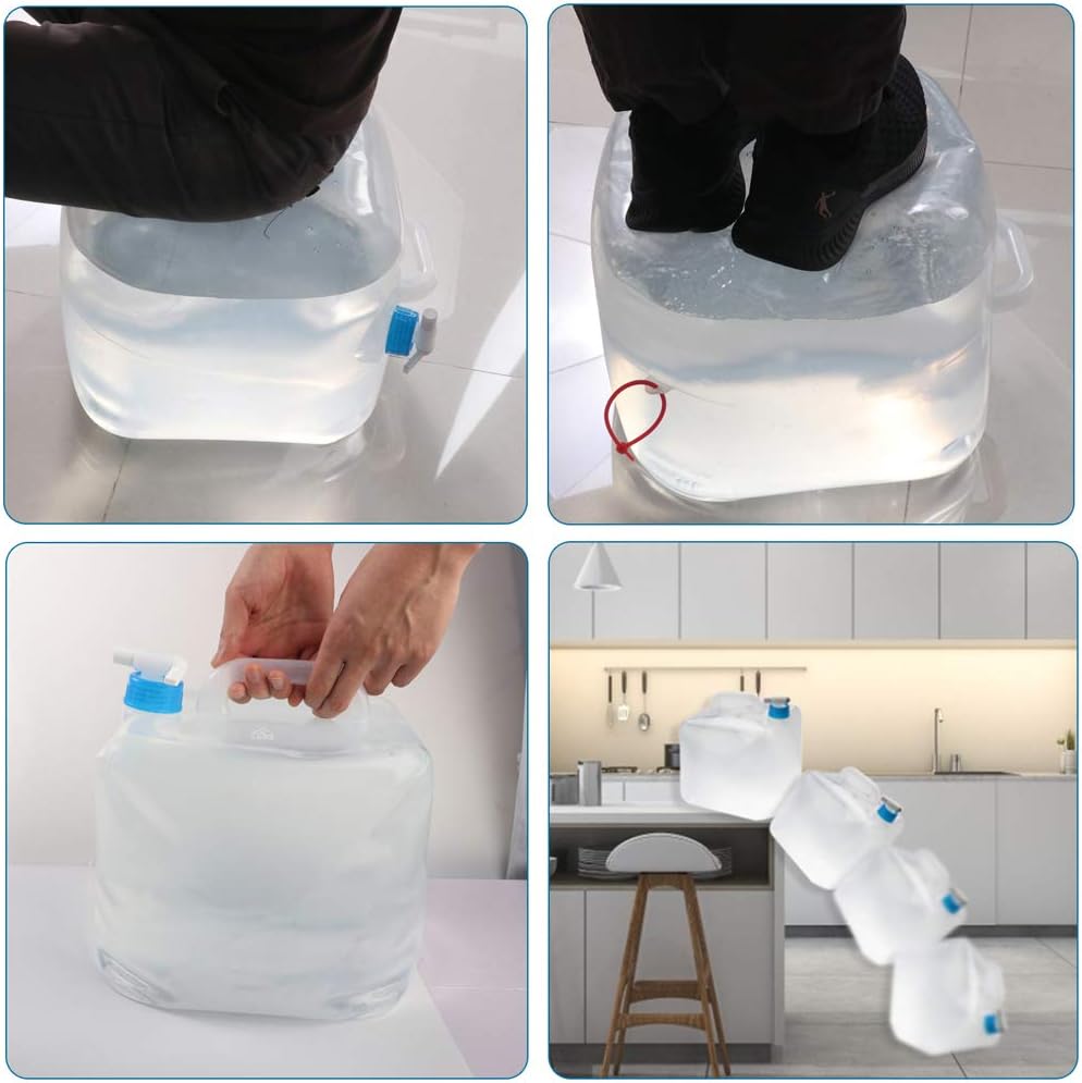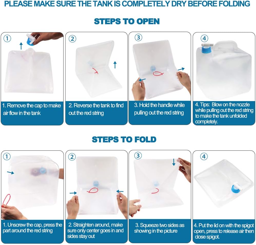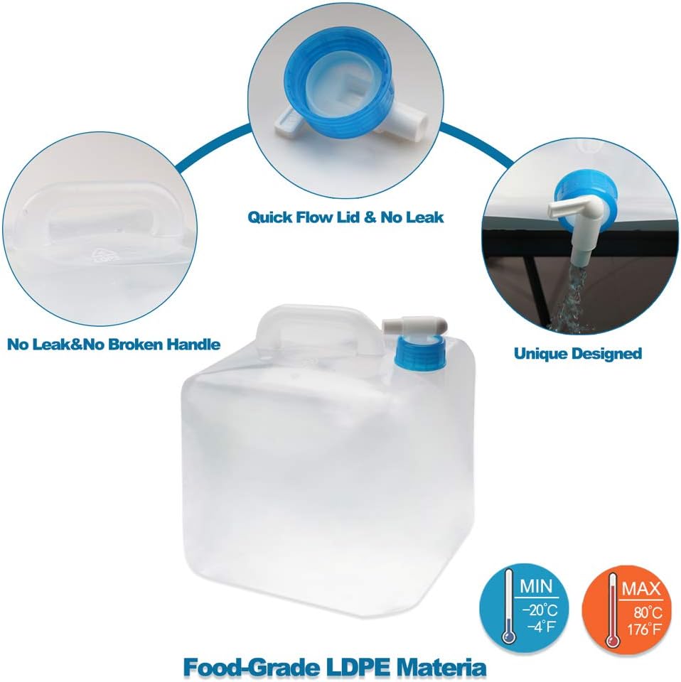 BPA-FREE & FOOD-GRADE: Our foldable water tanks are made of premium USA material LDPE4 plastic. No BPA PVC and DEHP. Non-toxic. Odorless and tastless. More transparent and soft, not easy to be damaged or cracked compared with other water containers in the market.