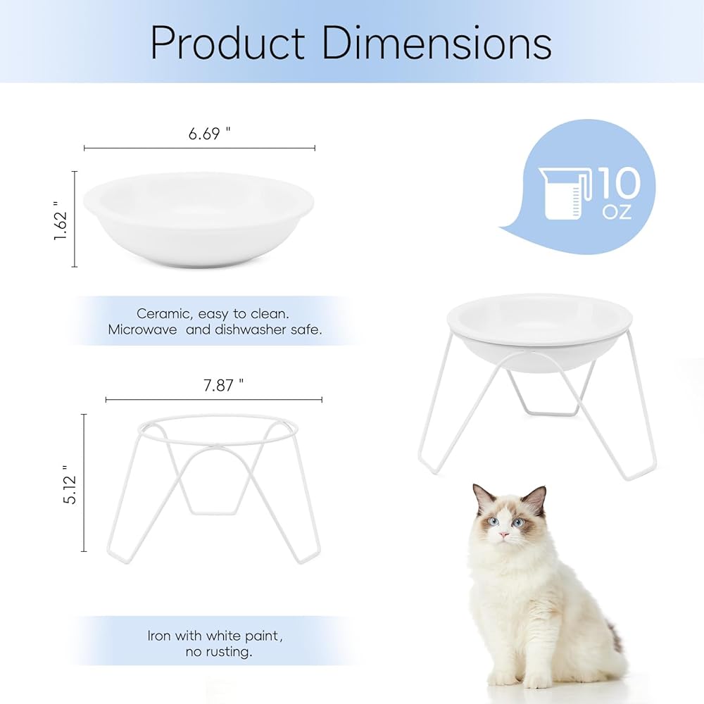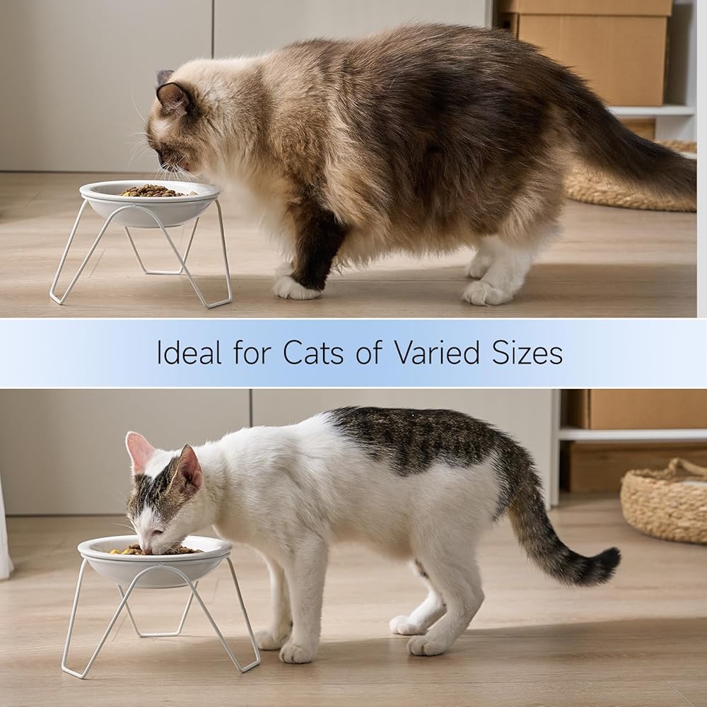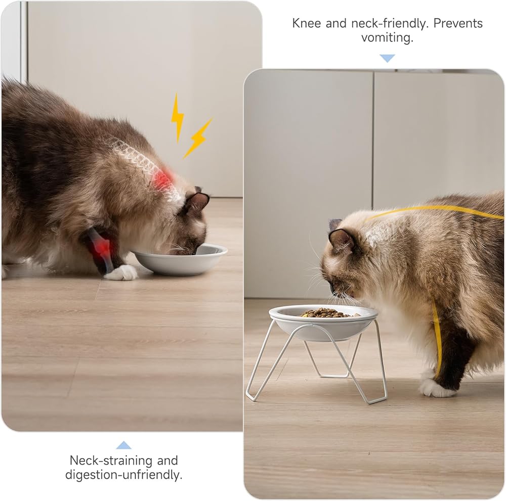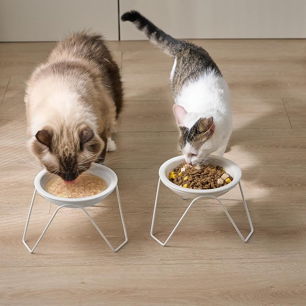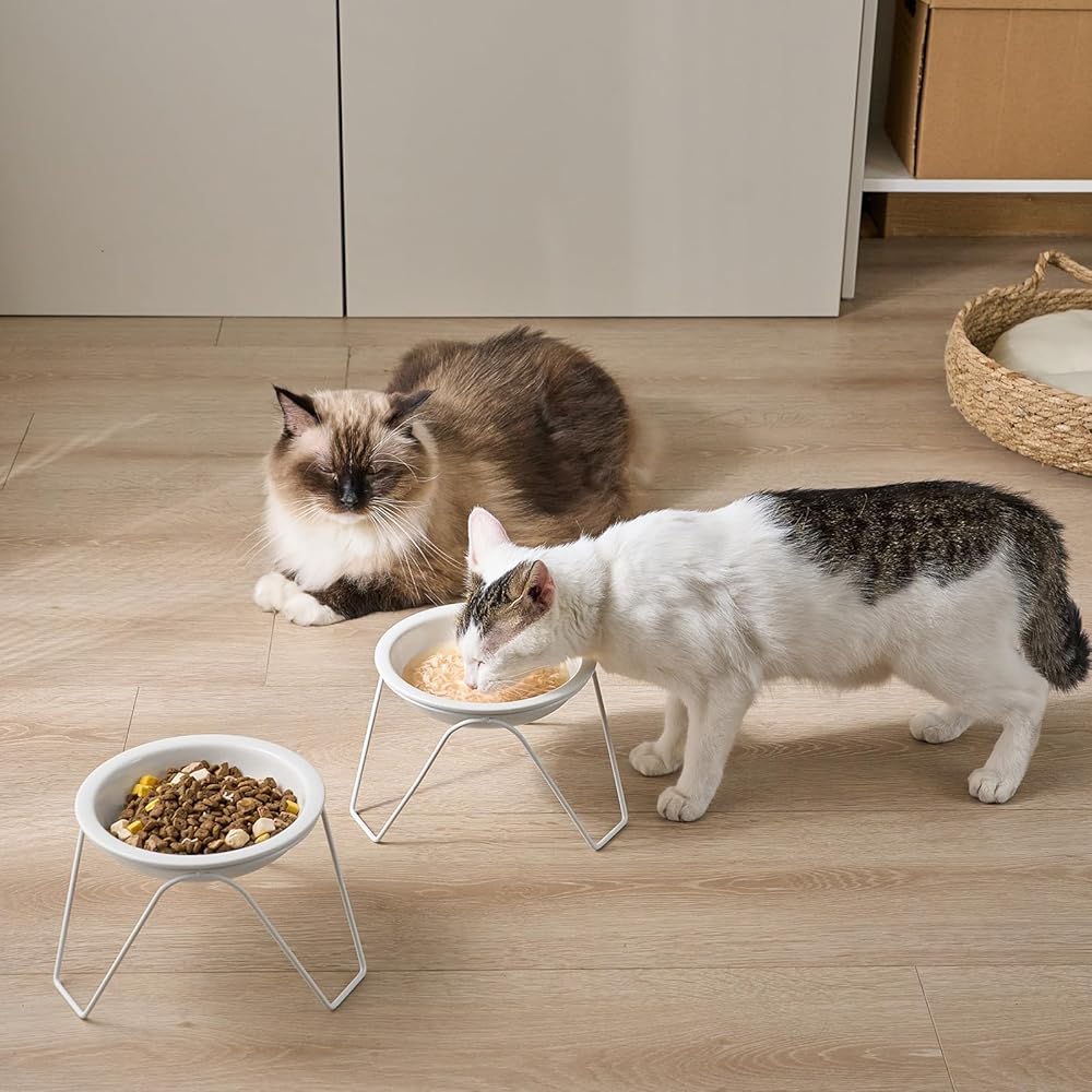 أوعية طعام القطط، أوعية طعام القطط المرتفعة من السيراميك من CEEFU، مكونة من قطعتين للطعام والماء، أوعية أطباق مرتفعة للحيوانات الأليفة مع حامل، للقطط والكلاب الصغيرة، آمنة للاستخدام في غسالة الأطباق