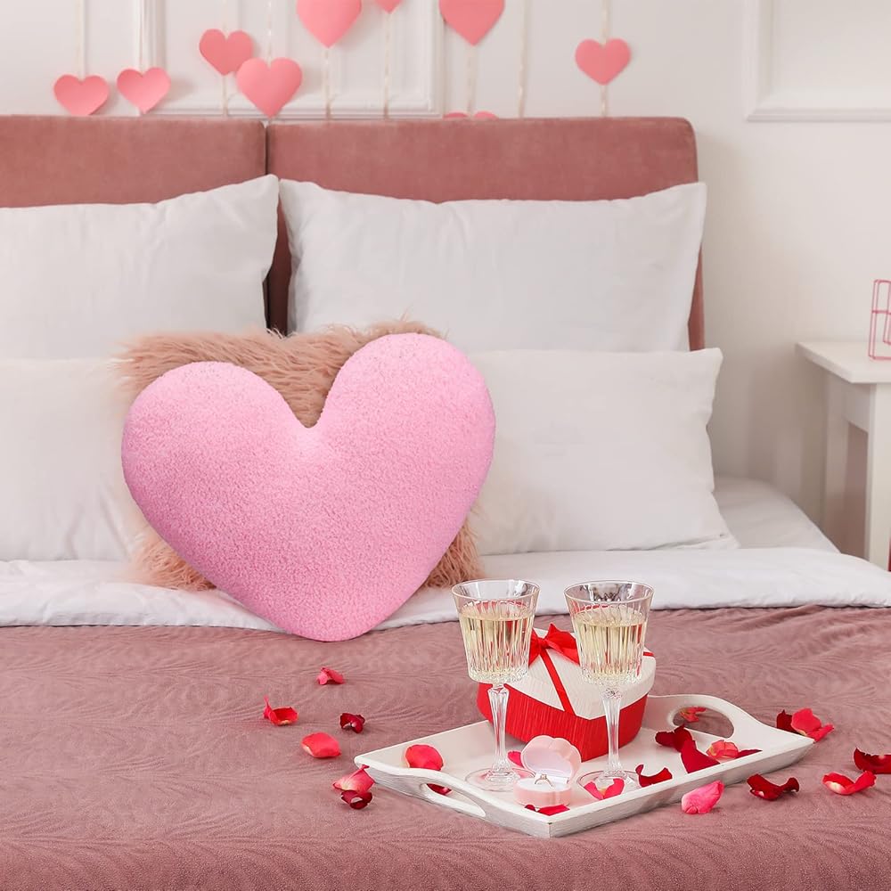Fumete لطيف القلب أفخم وسادة 14 × 17 بوصة رقيق شكل قلب وسادة لعبة رمي الوسائد محشوة القلب Plushie وسائد الظهر الزخرفية للأطفال صديق فتاة عيد الحب هدية مناسبة لغرفة النوم (الوردي)
