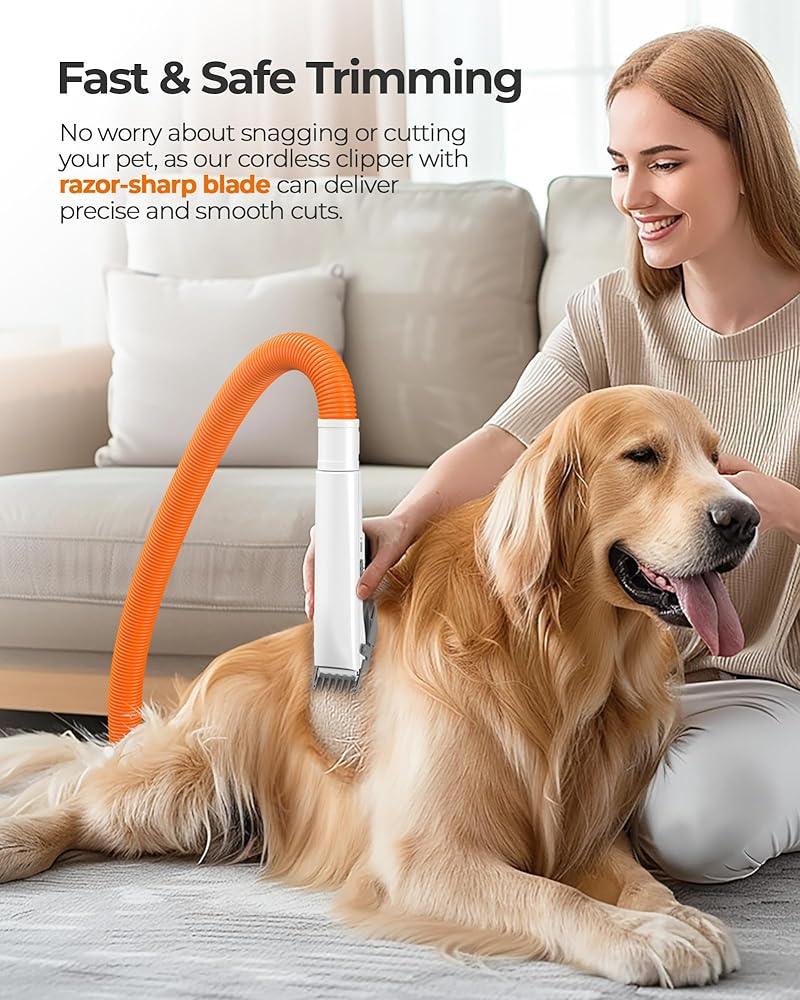 Dog Grooming Kit, 13kpa Pet Hair Vacuum & Dog Dryer with Cordless Hair Clipper for Trimming and Drying, Low Noise 3 Air Speeds and Smart Thermostat for Cat Dog Hair Care