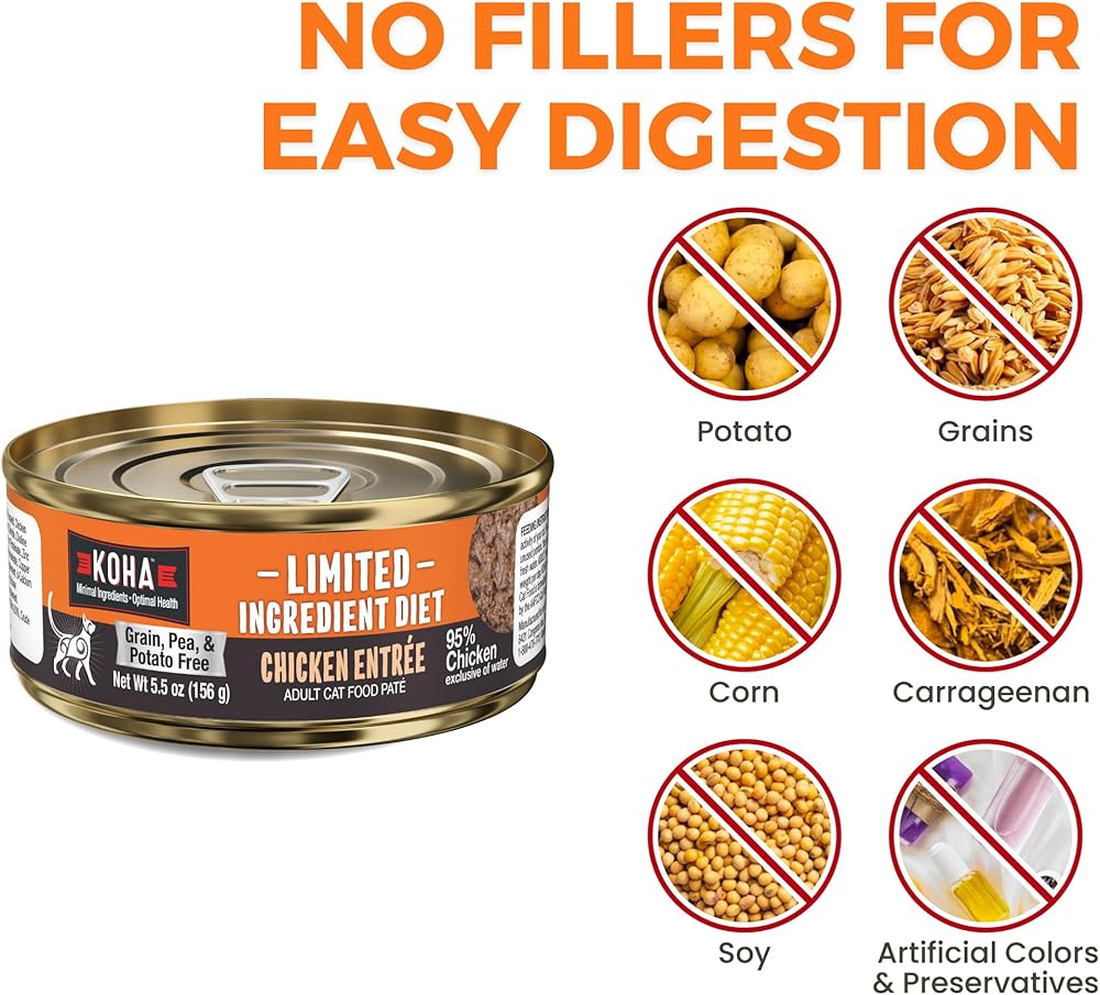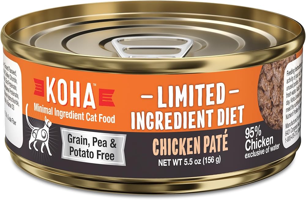Help your pet thrive with KOHA Limited Ingredient Diet Rabbit Paté cat food. With only one meat per recipe, Limited Ingredient Diet canned cat food is the best choice for extreme food sensitivities, digestive issues, or sensitive stomachs. We put no unnecessary carb-loaded fillers such as grains, potatoes, wheat, corn, soy or carrageenan that can lead to digestive issues. These cat pate recipes include the beneficial ingredients of pumpkin for healthy digestion and New Zealand Green Mussel to support joint health. Limited Ingredient Diet wet food for cats have a paté texture, a delicious taste that cats love, and are easy to digest making stomachs happy and purrs aplenty!