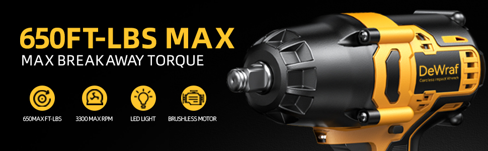 【750N.m High Torque & Brushless Motor】Impact wrench delivers a maximum torque of 550 ft-lbs (750N.m). Power impact wrench effortlessly loosens or tightens various types of bolts or nuts, including removing car tires, assembling furniture, installing scaffolding, garage use, DIY projects, etc.