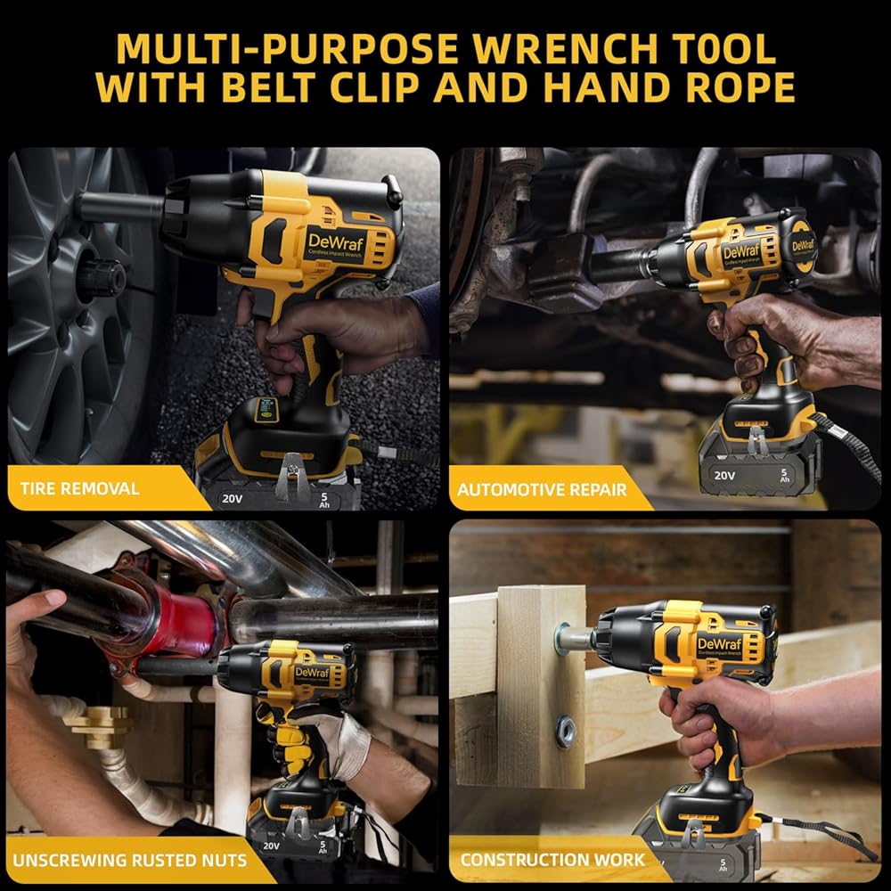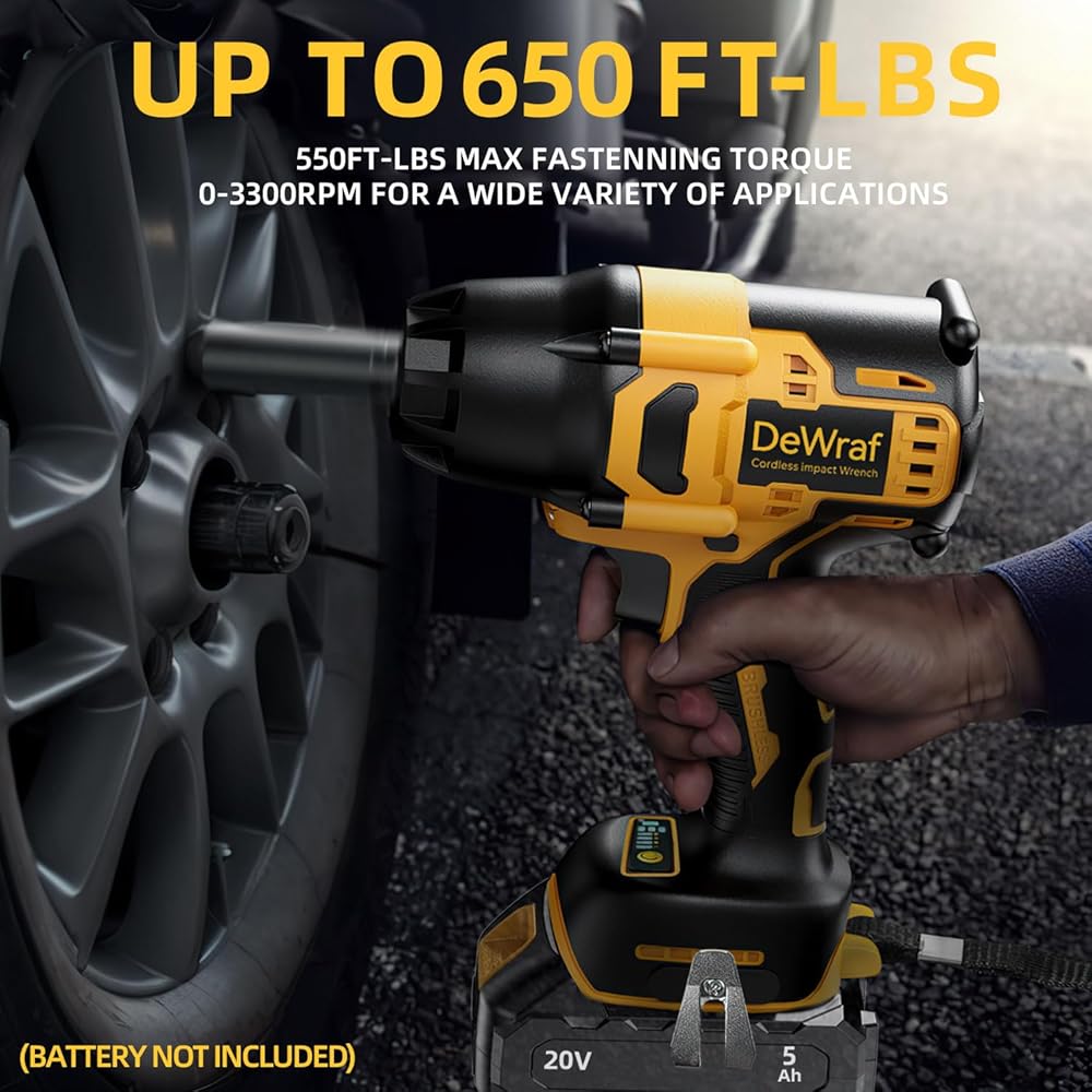 【Portable and Cordless Design】Cordless impact wrench is compatible with Dewalt 20V Max battery( Not included), do not require wires and can be flexibly applied in the workplace and outdoor environment.