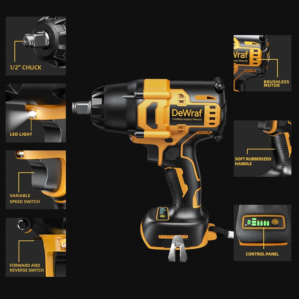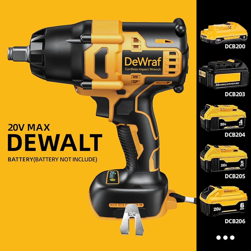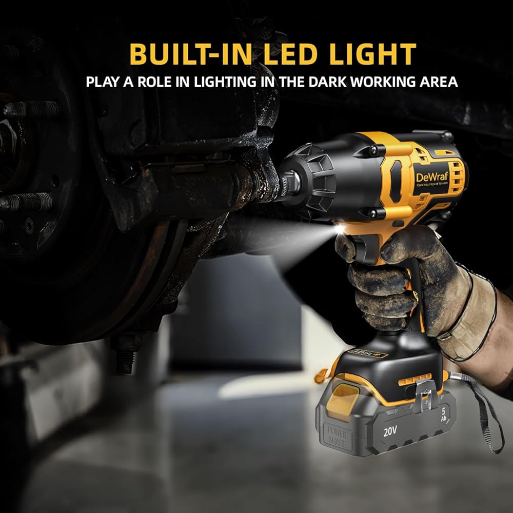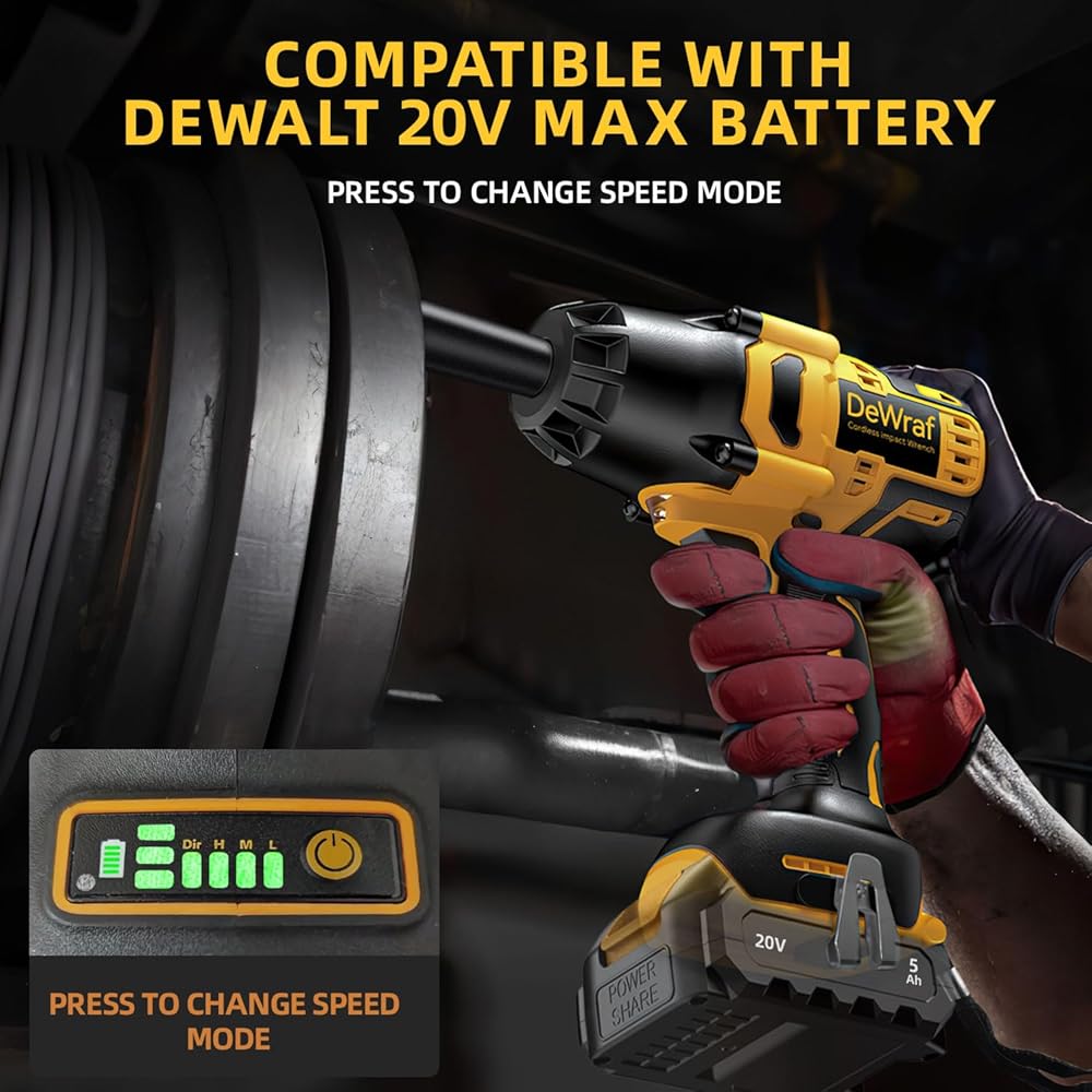 【Compatible with DEWALT Batteries】1/2 inch impact wrench has a compact design for quick and safe socket changes. Compatible with Dewalt 20V Max batteries DCB200/DCB203/DCB204/DCB205/DCB206 and more.