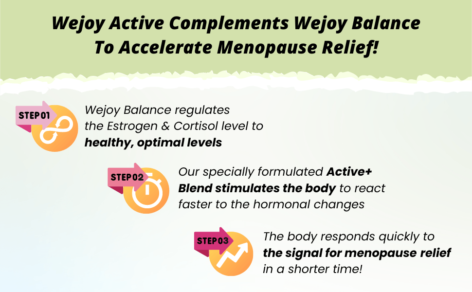Wejoy Active is a menopause pill designed to support overall women's health. Helps with immune system, brain fog and fatigue. For best results, take it with Wejoy Balance.