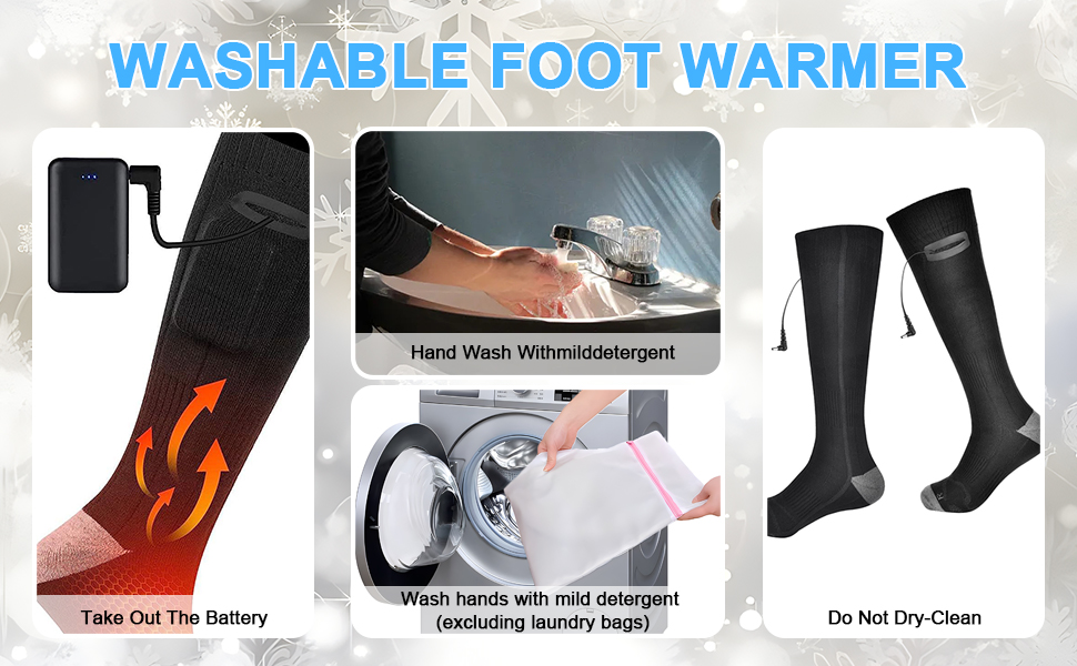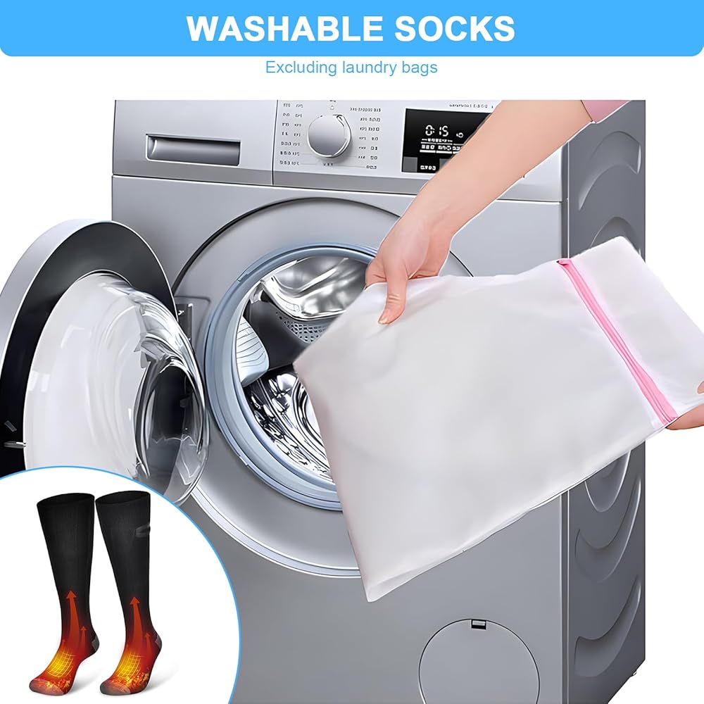 • 【Comfortable & Machine Washable】Our heating socks are thicker and longer with wider barrels. The main materials include crystal fleece, modal core yarn and spandex, soft, breathable, super stretchy and anti-pilling. High-quality fabric supports your arches ankles and toes perfectly for easier movement. The heated socks suitbale for machine and hand washed, don't worry about tearing while machine washed. Tips: Remember to remove the battery before washing.