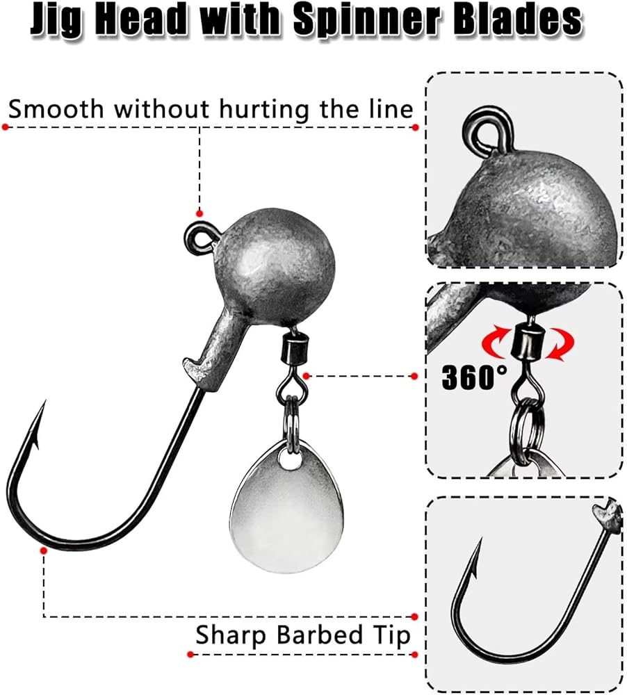 【Fish-Attracting Vibration】Spinner blades produce more flash and vibration that enhances your baits action to attract fish from greater distances.