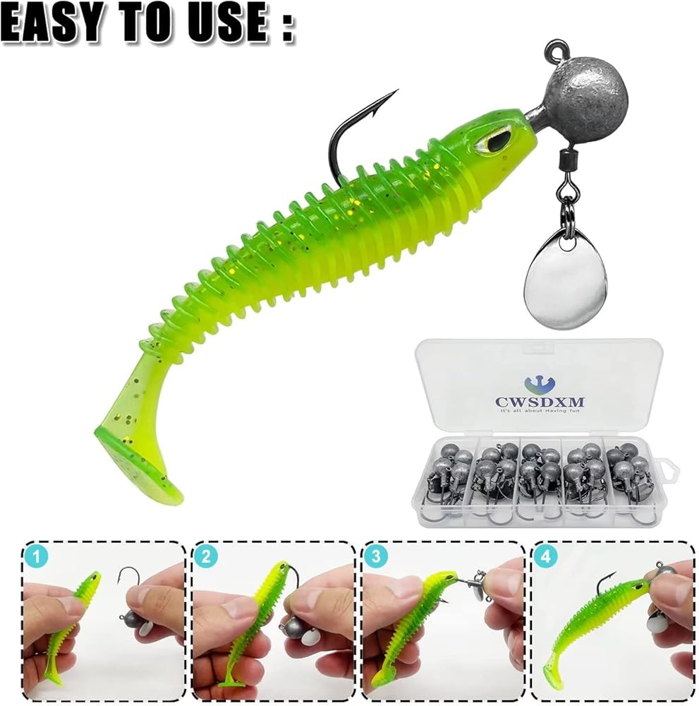 【Easy to Use】The Round jig head are built in barb for easy bait attachment.You can easy rig up your favorite soft baits deeply and harvest Bass, Trout, Walleye, Bluegill, Crappie and other species fish.