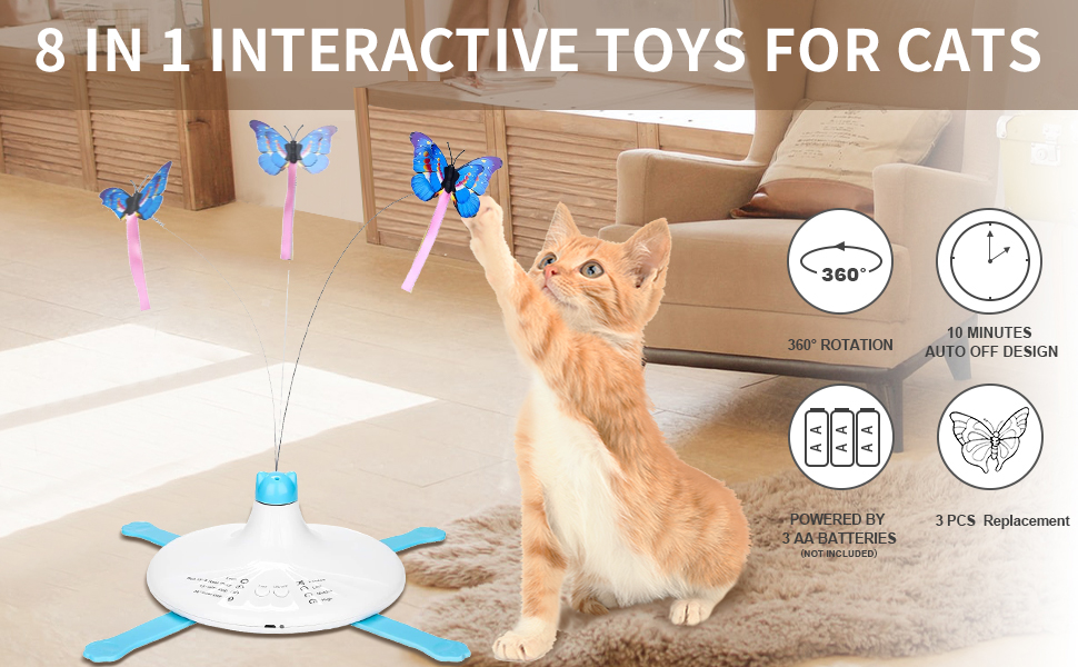 【لعبة تفاعلية للقطط: تحاكي الفراشة الدوارة 360 درجة حركة الفراشة الحقيقية، والتي يمكن أن تجعل القطط تصطاد وتطارد. المادة الرئيسية لهذه اللعبة المثيرة على شكل فراشة مصنوعة من مادة أكريلونتريل بوتادين ستايرين عالية الجودة، ومضادة للعض، ومتينة، ولا تسبب ضررًا للقطط، وستكون قطتك أكثر نشاطًا وصحة.