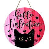 ✔【Prefect Workmanship】Our rustic door pediment design is unique and beautiful. The words "hello valentine" and pink color, cute black cat, love hearts patterns are printed on the wooden board, which is suitable for Valentine's Day