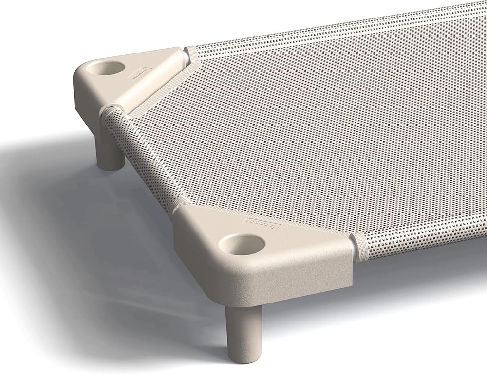 أنابيب من الفولاذ المقاوم للصدأ مطلية بالمينا ذات قطر أوسع وسمك أكثر سمكًا لدعم الأوزان التي تزيد عن 80 كجم؛ شبكة منسوجة خصيصًا من أجل المتانة والصداقة للبيئة؛ أرجل دعم صلبة شديدة التحمل من أجل السلامة والأمان.