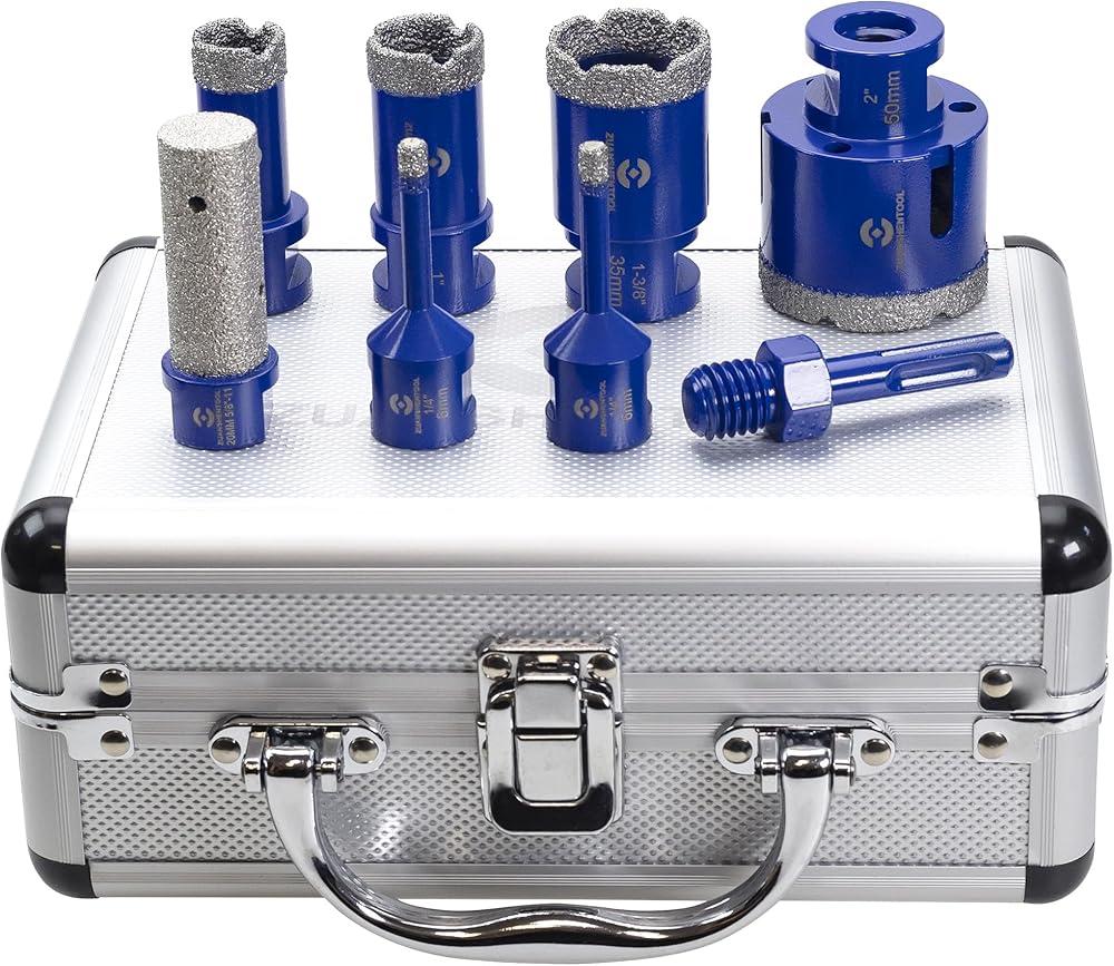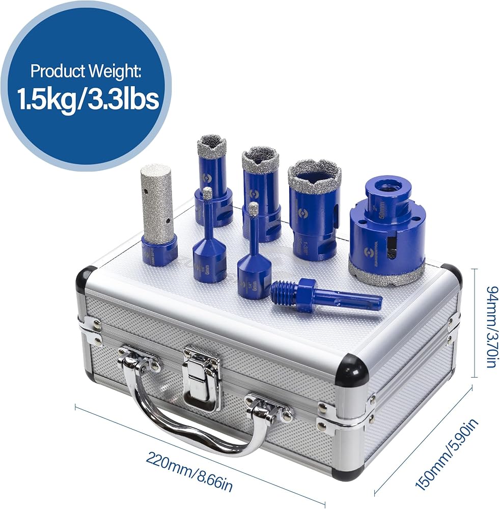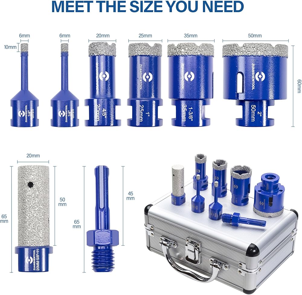 【المواصفات: تحتوي مجموعة لقم الثقب الماسي على 10 قطع من رؤوس الثقب الماسية النحاسية المفرغة، بما في ذلك طقم منشار ثقب 6/8/10/20/25/28/32/35/50 مم + قطعة واحدة 35 مم (1-3/8) ") لقمة الشطب المائلة.