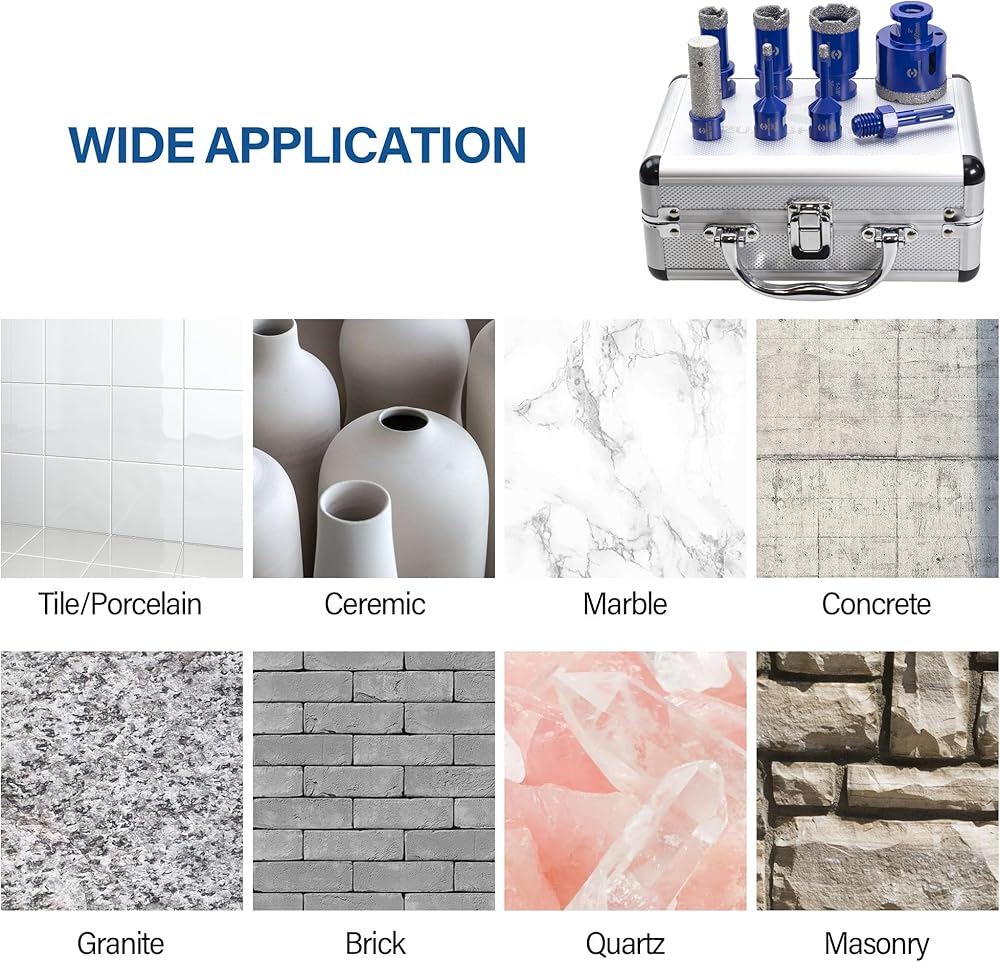 【المميزات】: يمكن استخدام لقم الثقب الماسي على نطاق واسع للحفر الجاف أو الرطب لبلاط البورسلين والجرانيت والرخام والحجر والبناء وغيرها من المواد المماثلة.