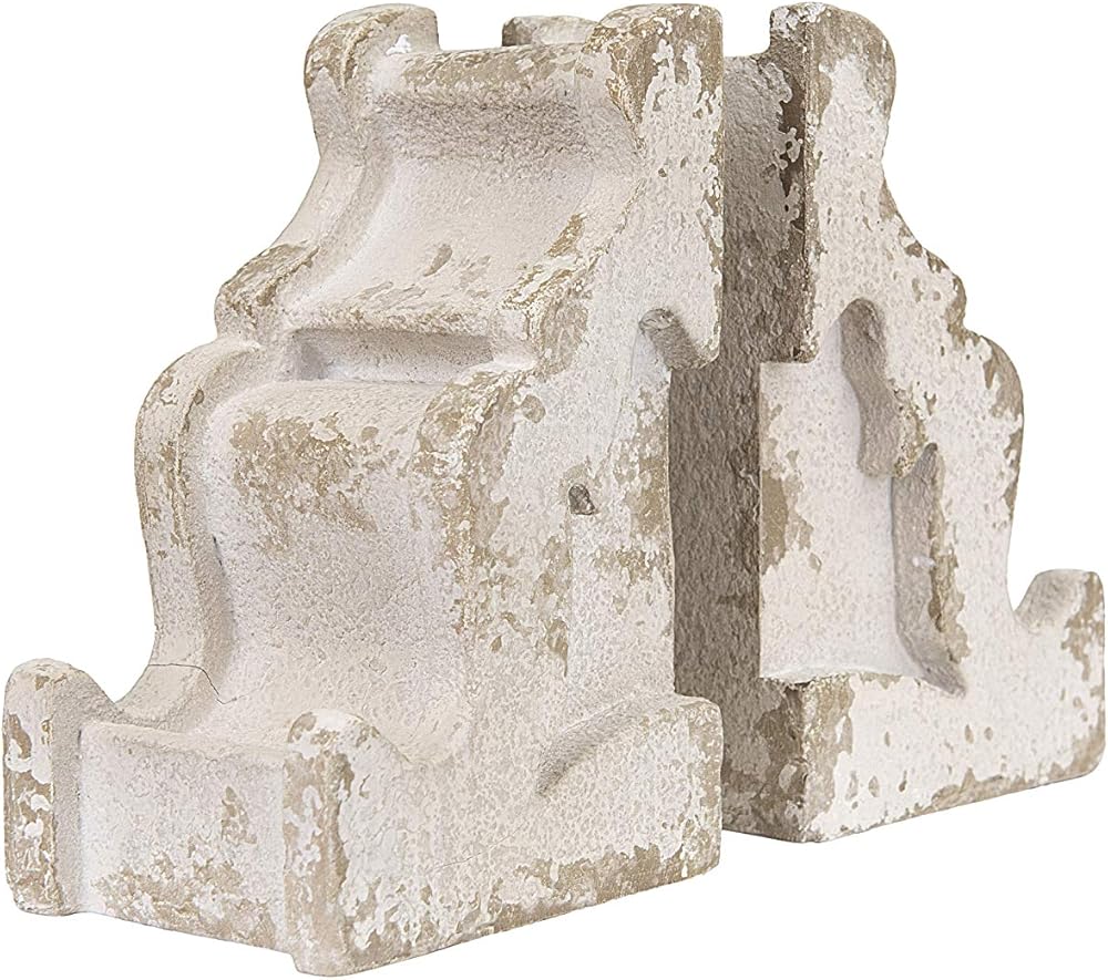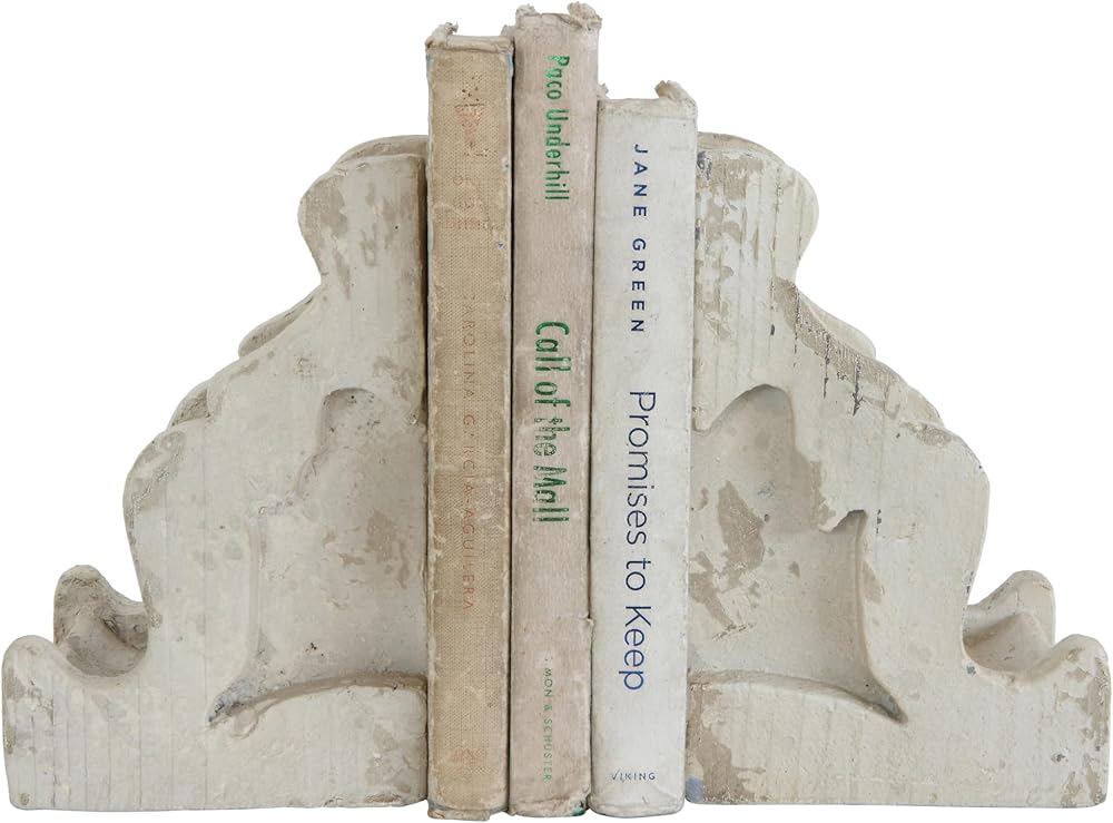 تعد مساند كتب المغنيسيا البيضاء المتعرجة هذه طريقة ممتعة وفريدة من نوعها لتنظيم وتزيين مجموعة الكتب. مصنوعة من المغنيسيا، وهي مادة خفيفة الوزن ومتينة يمكنها حمل الكتب بأحجام وأوزان مختلفة. تتميز بشكل كوربل، وهي دعامة زخرفية تدعم الهيكل أو الرف. تتميز بلمسة نهائية معقدة للغاية تمنحها مظهرًا عتيقًا وقديمًا، مما يضيف بعض الاهتمام المعماري والأناقة إلى ديكور المنزل. إنها مثالية لأي نمط ريفي كلاسيكي أو عتيق أو فرنسي لديكور المنزل، لأنها تكمل أي نظام ألوان وخامة. إنها رائعة لعرض الكتب في غرفة المعيشة أو غرفة النوم أو المكتبة. يبلغ مقاس كل مسند كتب 7.75 انش طولاً و4 انش عرضًا و5 انش ارتفاعًا. للحفاظ على جمالها، ببساطة امسحها بقطعة قماش جافة. تعد مساند الكتب هذه إضافة متعددة الاستخدامات وأنيقة لأي منزل.