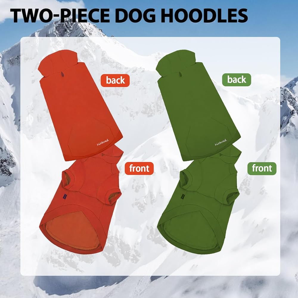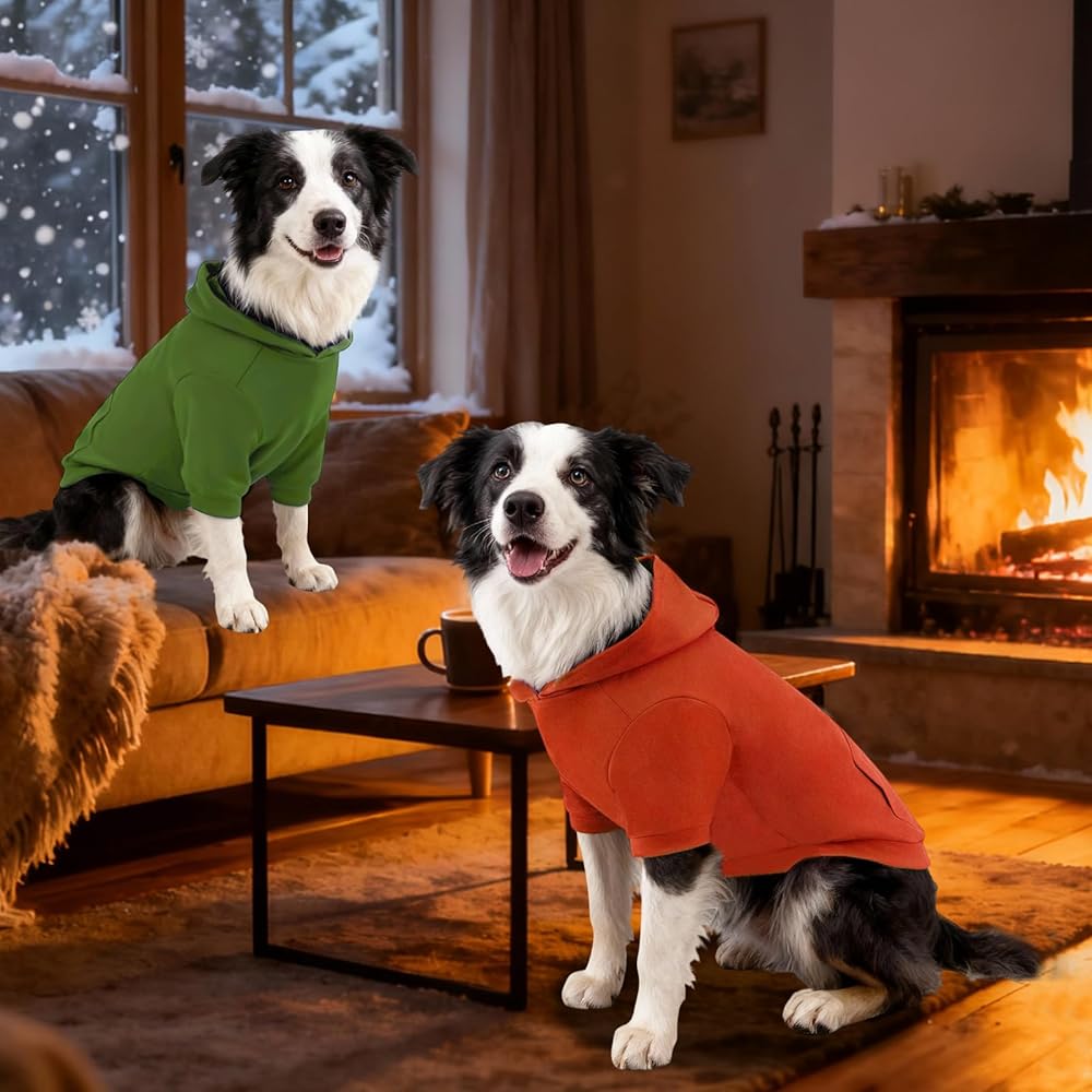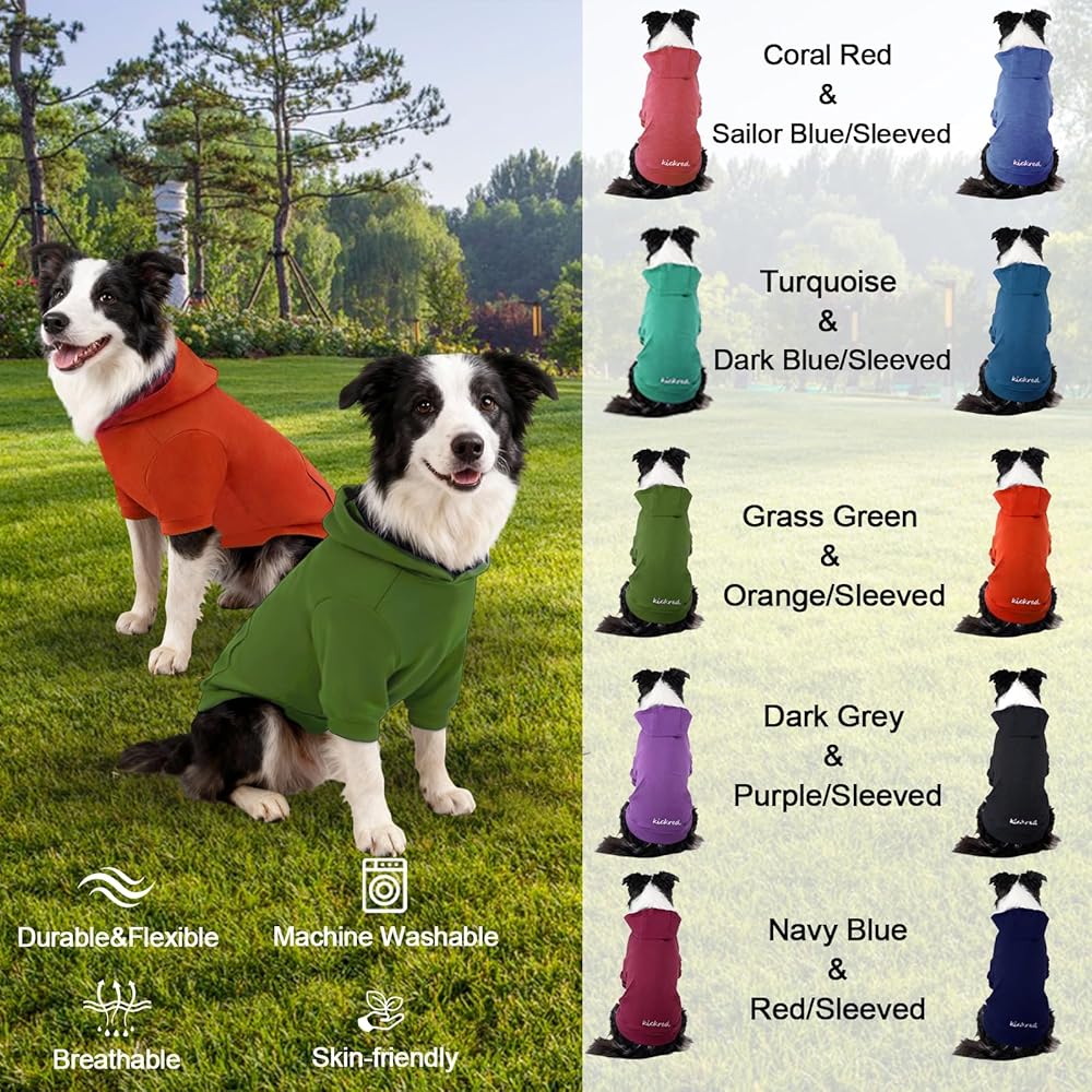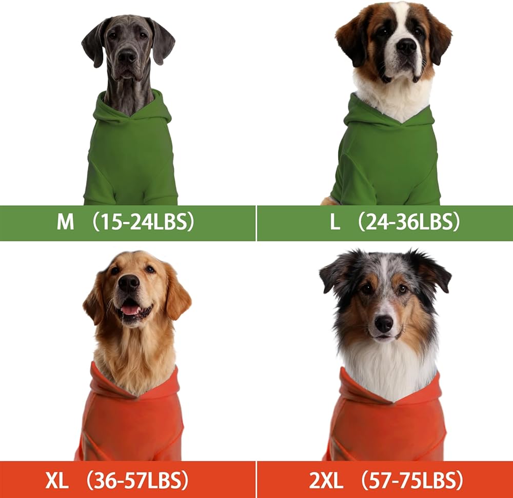 Blends function with fashion via a solid color cotton fabric and casual sports hoodie that brings breathable, lightweight comfort and a hood to keep their noggin warm Stitched leash portal lets you effortlessly clip on their leash to keep every journey you and your pup dive into safely on track Design features Dual Reinforced stitching at every seam for longevity and durability with a Pull-over design for easy on and off access PACKAGE INCLUDE: 2 x Dog hoodies IMPORTANT SIZING NOTE: Different sellers have different size charts standard. Your dog usually wears size "M" doesn't mean all size "M" will fit him/her. If your dog is between sizes, please size up. If there is a difference between the neck and the chest, follow the chest size. If your dog is underage, please take the growth factor into consideration when choosing the size. Leave room for at least two fingers to make the dog feel comfortable and not choke. SIZE CHART: SIZE XS: Neck Girth 9"/ 23cm; Chest Girth 15"/ 37cm; Back Length 10"/ 25cm SIZE S: Neck Girth 10"/ 25cm; Chest Girth 16"/ 40cm; Back Length 12"/ 30cm SIZE M: Neck Girth 13"/ 33cm; Chest Girth 21"/ 53cm; Back Length 16"/ 40cm SIZE L: Neck Girth 17"/ 43cm; Chest Girth 28"/ 70cm; Back Length 20"/ 50cm SIZE XL: Neck Girth 22"/ 56cm; Chest Girth 33"/ 83cm; Back Length 24"/ 60cm SIZE 2XL: Neck Girth 25"/ 62cm; Chest Girth 36"/ 92cm; Back Length 30"/ 75cm