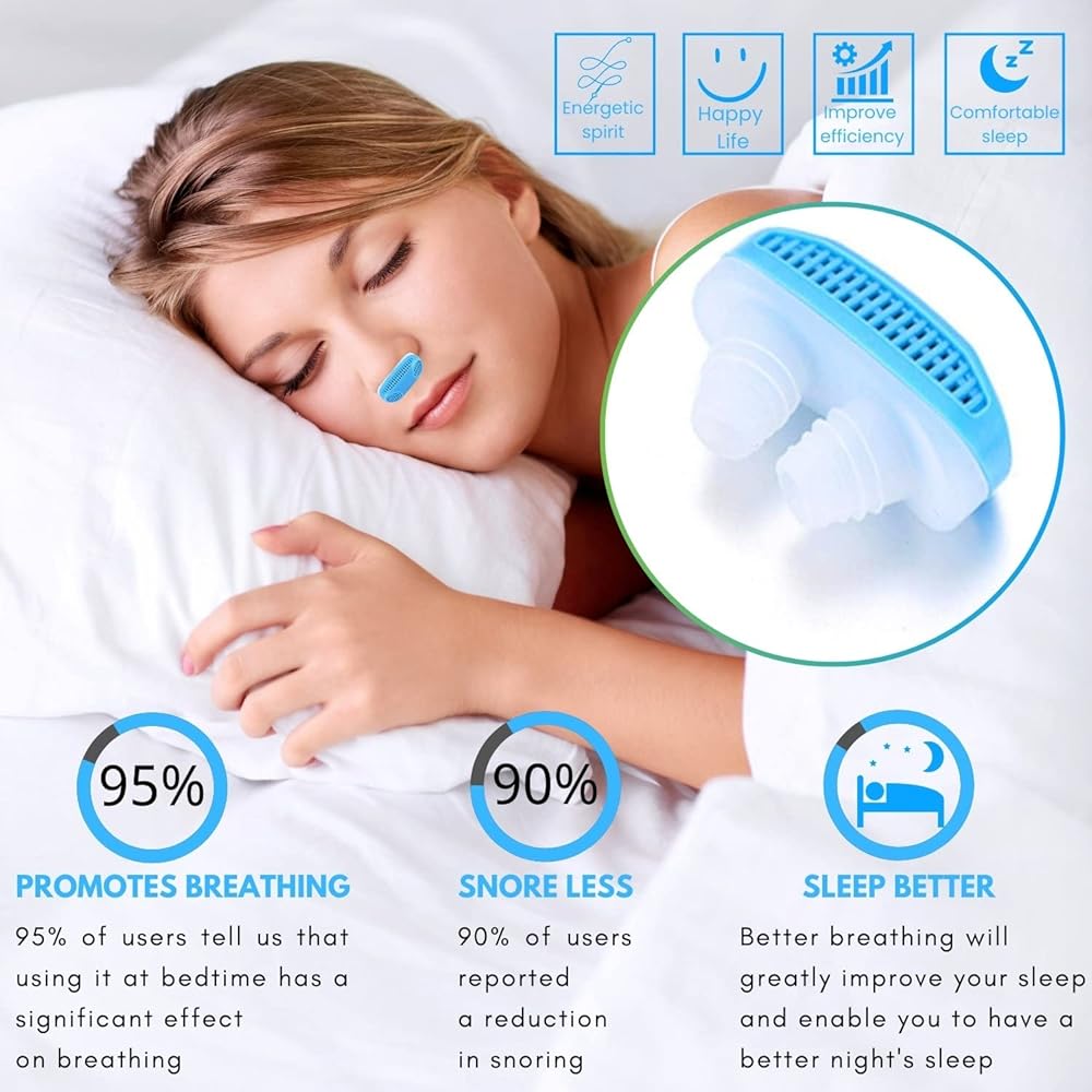 【Clean air】: the built-in activated carbon filter effectively filters out harmful gases and dust to produce healthy air. Simply insert the vent into your nostrils and sleep peacefully.