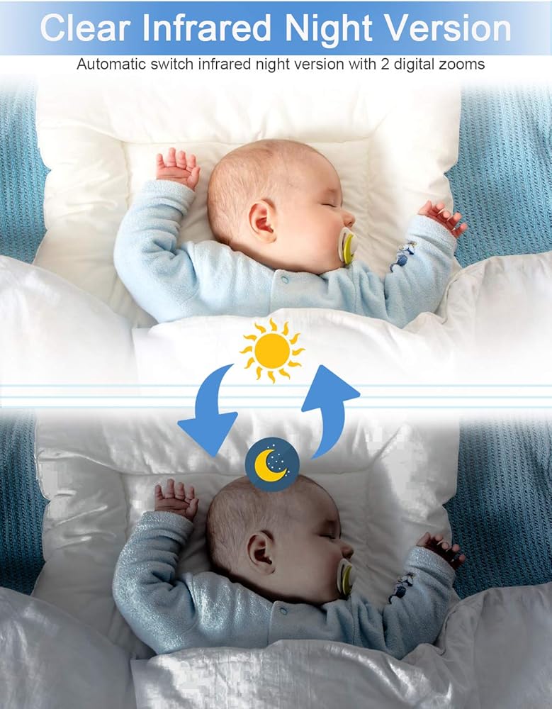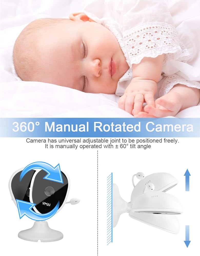 ❤[شاشة LCD عالية الجودة مقاس 4.3 بوصة ورؤية ليلية بالأشعة تحت الحمراء] تتوفر أحدث رؤية ليلية بالأشعة تحت الحمراء للتبديل التلقائي ليلاً ونهارًا لتظهر لك ما حدث مع ملاكك الصغير في كل ثانية في الليل. معرفة سلامة طفلك وصوته باستخدام VMAI شاشة فيديو LCD عالية الجودة مقاس 4.3 بوصة للأطفال توفر لك فيديو وصوتًا أكثر وضوحًا في الوقت الفعلي مع تقريب رقمي 2x و360 درجة للطفل غير المراقب.