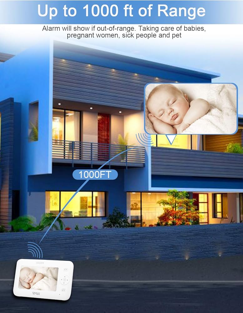 ❤【نقل رقمي لاسلكي يصل إلى 1000 قدم ومستقر بتردد 2.4 جيجا هرتز】إصدار جديد واستقرار محسّن للاتصالات لمراقبة الأطفال وكاميرات الأطفال. توفر كاميرا VMAI Baby دقة عالية وتدفقًا ثابتًا، وأحدث تقنية FHSS بتردد 2.4 جيجا هرتز لاتصال فائق الثبات وآمن للغاية ورؤية وصوت رقمي مفصل للغاية. تتيح لك مساحة مفتوحة طويلة جدًا تصل إلى 1000 قدم مشاهدة طفلك حتى خارج المنزل.