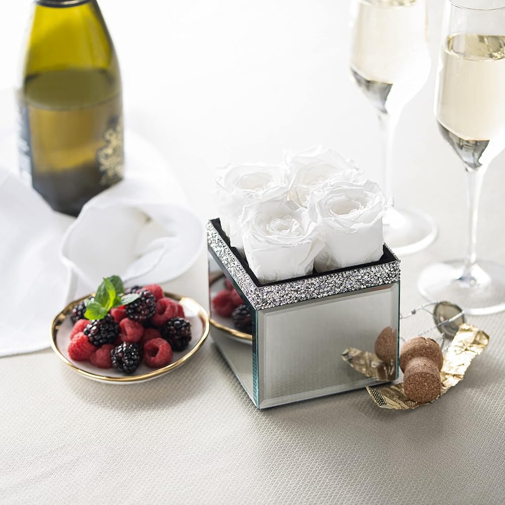 • مزهرية مرآة أنيقة - معروضة في مزهرية أنيقة ذات مرآة مع حواف تشبه الماس المرصوف. ستضيف شاشة الورد الرائعة هذه الأناقة والأناقة إلى منزلك.