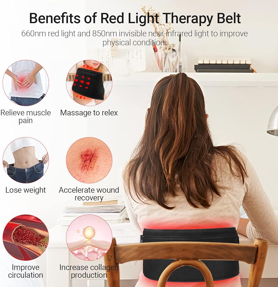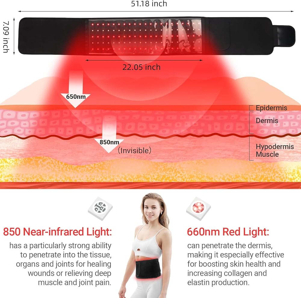 MULTI-FUNCTION: This red light therapy belt can wrap your whole body including your head, neck, back, shoulders, arms, knees, hands, and feet to help you improve your physical condition, accelerate postoperative wound recovery, relieve soreness, Improve sleep, and enhance body resistance.