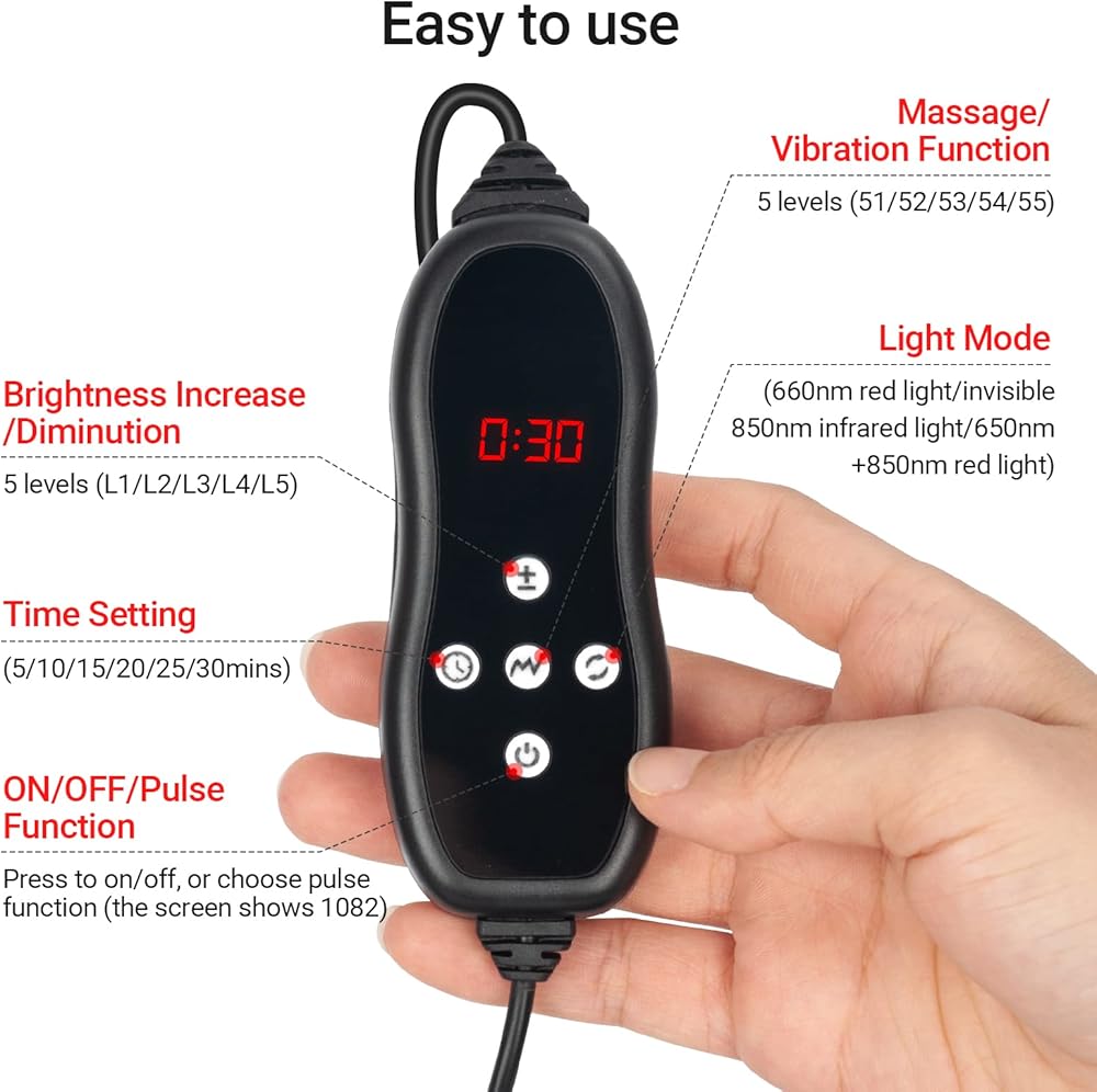 TWO PROFESSIONAL GRADE LED LIGHT THERAPY: 660nm red light (visible light) can penetrate the skin epidermis, promote cell metabolism, and repair damaged skin, 850nm infrared light (invisible light) it penetrates deeper than red light, can have a thermal effect on muscles, can accelerate blood circulation, Pain relief and relaxation of muscle tension.