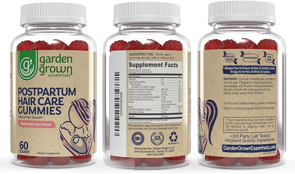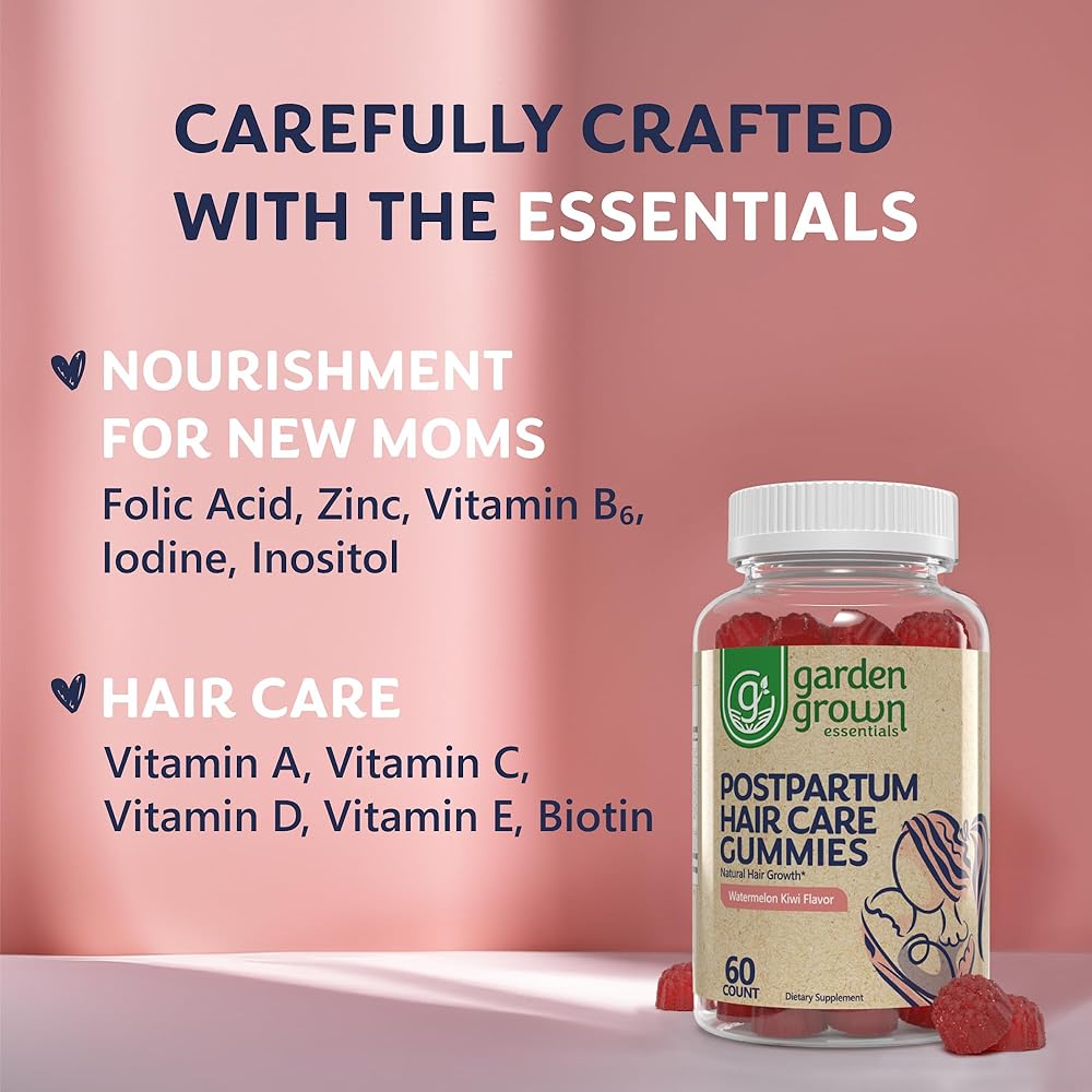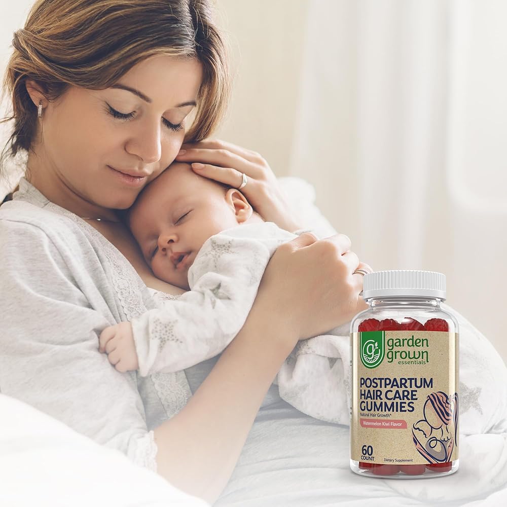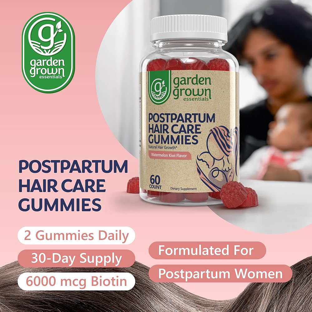 علكات تساقط الشعر بعد الولادة للنساء - مُصممة للعناية بالشعر بعد الولادة، والنمو، وصحة فروة الرأس، وإعادة النمو، وتساقط الشعر، والجلد والأظافر - 6000 ميكروجرام من البيوتين ومزيج الفيتامينات للأمهات - صُنع في الولايات المتحدة الأمريكية