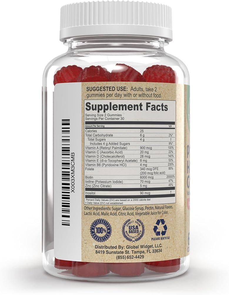 • مكمل للعناية الكاملة بالشعر - استمتعي بأقصى نتائج لنمو الشعر مع 6000 ميكروجرام من البيوتين وفيتامين أ وفيتامين ج وفيتامين د وفيتامين هـ. كما يساعد أيضًا على تحسين صحة البشرة والأظافر.