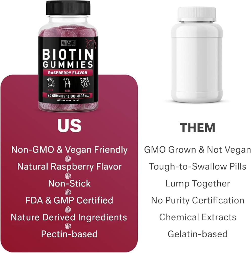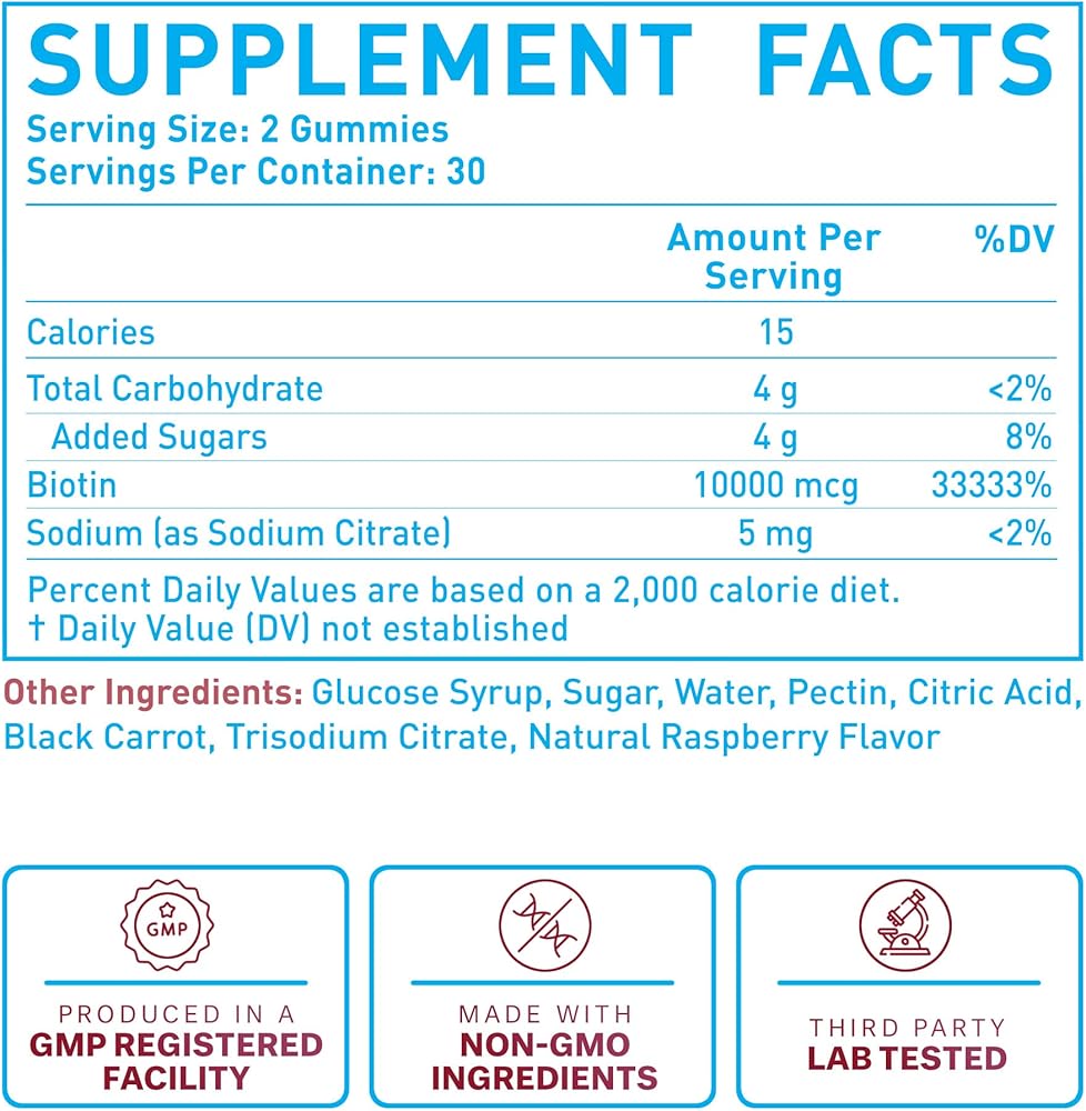 مع 10000 ميكروجرام من البيوتين النقي، تقدم العلكات لدينا الجرعة الأكثر فعالية وفعالية التي يمكنك العثور عليها. لا يتم تقديم هذه الفوائد بسهولة فحسب، بل تتميز أيضًا بمذاقها الرائع!