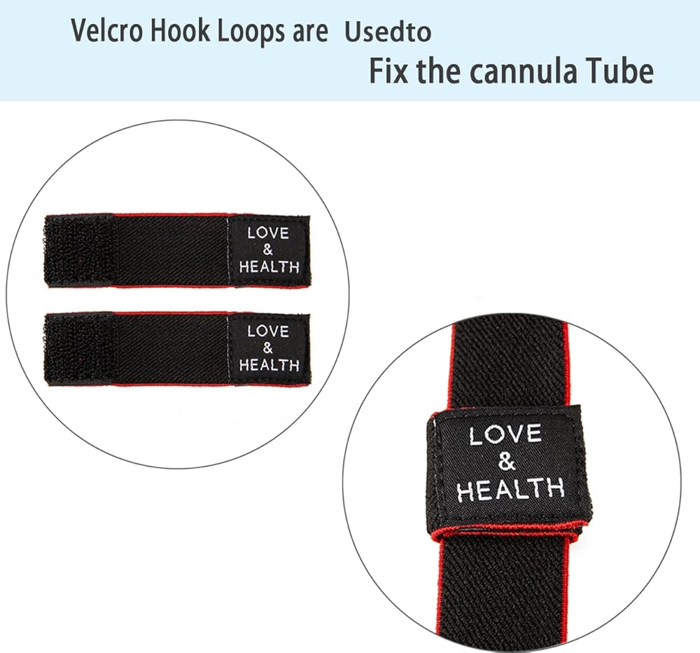 ✔️Velcro Loops - The headband comes with two velcro loops and foam protection for fixing and adjusting the cannula tube. They can slide on the headband and keep the cannula tube stay away from ears, preventing irritation caused by plastic tubing.