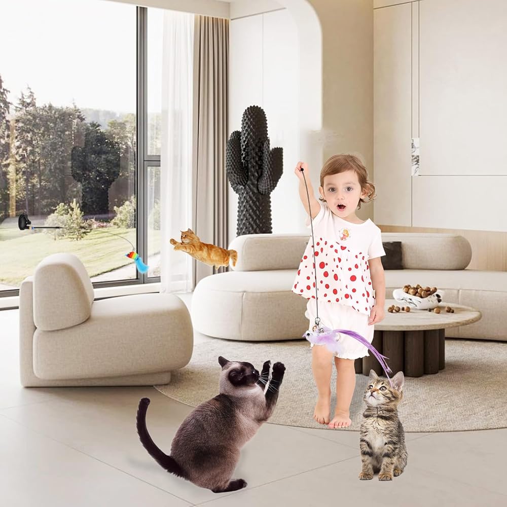 【🐾Indoor Cat Toy】All toy accessories in the package of suction cup cat toys are made of safe materials. You can rest assured that your cat can use kitten toys. This bird toy for cats will help your cat flip, jump, pounce, chase stay active indoors. Cat stimulation toys for active cats help cats expend extra energy and get more exercise. This is a great interactive pet toys to spend quality time with your cat. Gift your cat a cat toy box and keep your cat entertained when you can't be there.