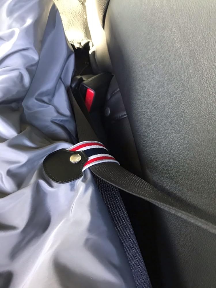 ما عليك سوى إدخال الفتحة الموجودة في الجزء العلوي من الغطاء فوق مسند الرأس للمقعد ويمكن إدخال حزام الأمان على الجزء الخلفي من سرير الحيوانات الأليفة لتعزيز الأمان