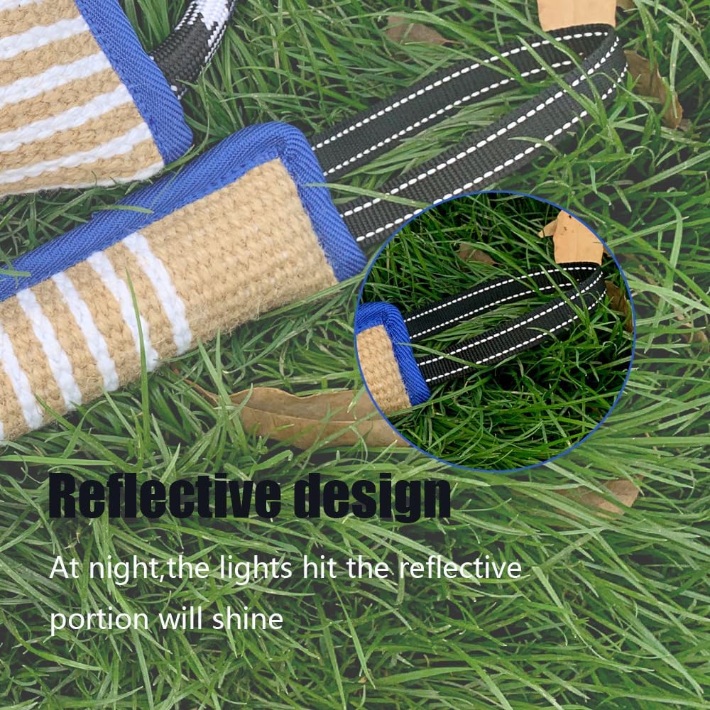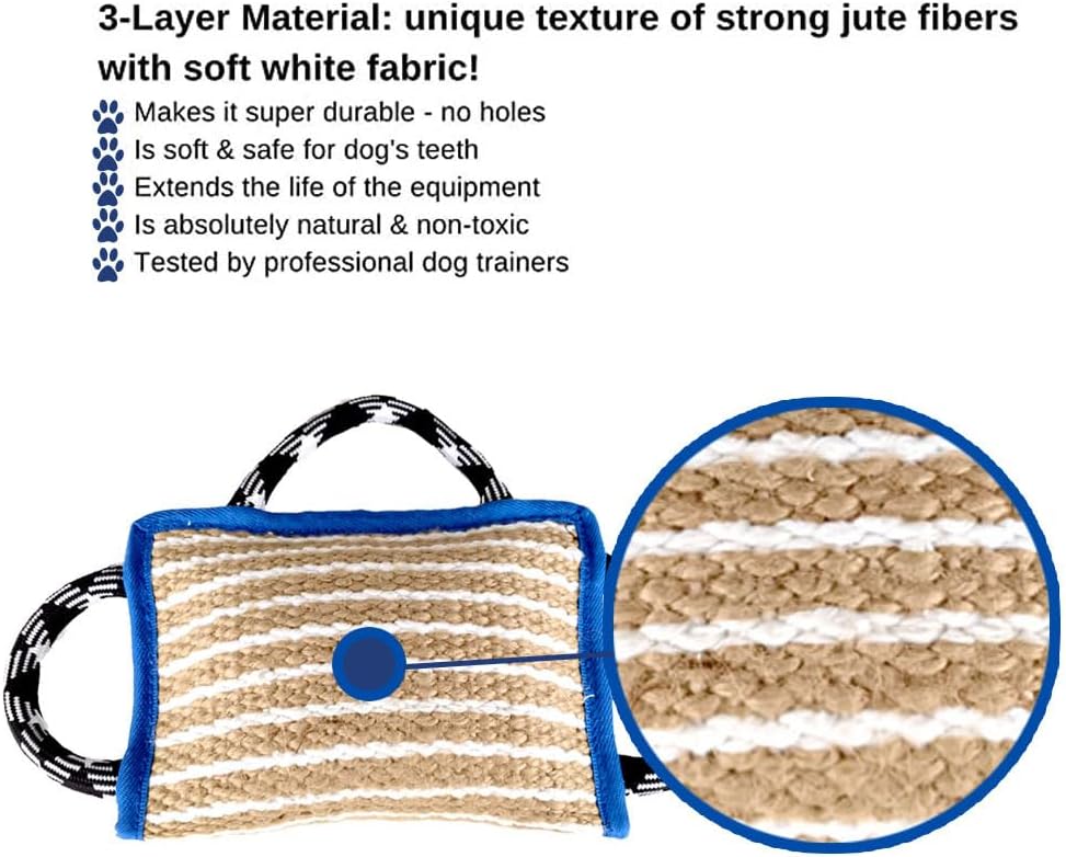 【Dog Bite Pillow】Incredibly Durable - Our bite pillow with double stitching is made of the highest quality jute material to ensure that your dog will never tear it when having fun. Biting surface is super tough but also very soft for dog teeth, to keep both of you absolutely safe. 【Dog Bite Pillow】Recommended By Dog Trainers - This pillow is great reward and exercise equipment, designed for interactive play, prey drive building, tug of war, k9 schutzhund training and more! It is trusted by the leading dog trainers working in military and police sectors.【Dog Bite Pillow】Comfortable & Sturdy Handles - The bite wedge features 3 heavy duty handles giving you more hand placement options and a secure comfort grip. our pillow is built safe and strong.【Dog Bite Tug Toy】 Designed for interactive and supervised play, tug toys is great reward and exercise toy, suitable for indoor and outdoor play. 【Dog Bite Tug Toy】 High quality and durable toy with double stitching and a tough biting sleeve surface made of jute and can cleans teeth and can help prevent gum disease. Dog Bite stick has2 handles for a comfortable and easy grip, full control and stability.【Not for Chew Toys】These dog bite pillows and sticks are built safe and tough but they are not indestructible. They could be nice training tools for small to medium breeds and puppies, but not a chew toy. Don't allow your dog to keep the toy after interaction has finished and don't let him bite the handles.