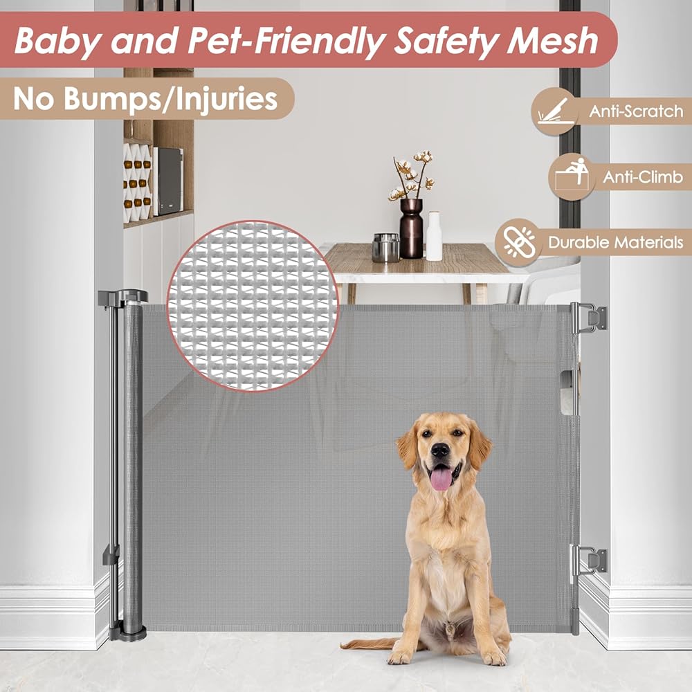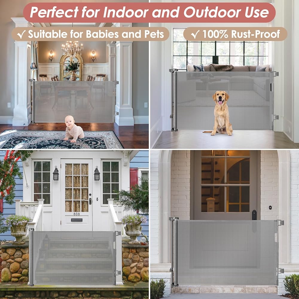 Retractable Design - Space-Saving: Our baby gates for dogs are perfect for high-traffic areas. This stair gate features a space-saving design, smoothly retracting when not in use. It allows you to maximize your living space while ensuring safety during use.