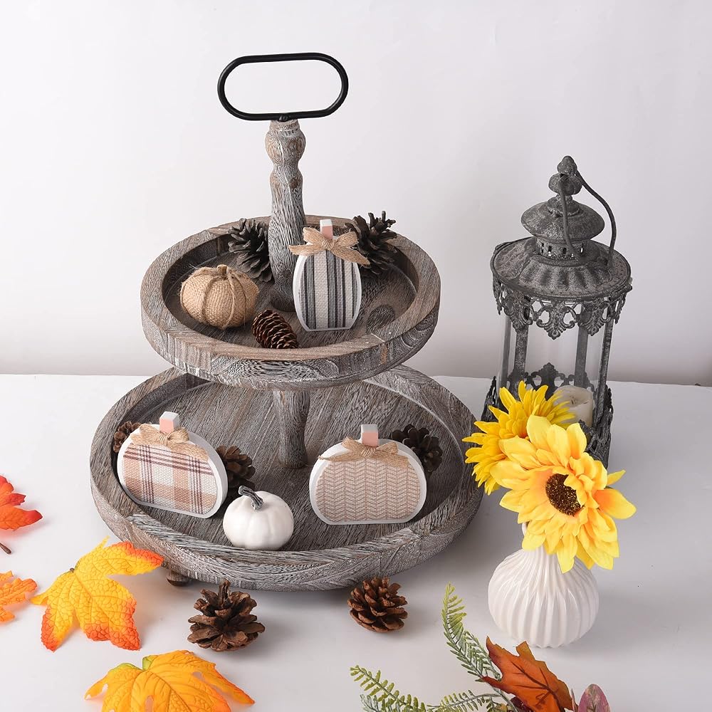 المقاس المناسب: تأتي ديكورات الصواني الخشبية ذات الطبقات الخريفية هذه بأربعة مقاسات، اليقطين الخشبي 10 × 9.5 سم، 10 × 9.5 سم، 10 × 5.6 سم، وقطر اليقطين المزيف 2.2 انش، وهي مناسبة لتزيين سطح الطاولة في الخريف، وعرض الوعاء الموسمي، وعشاء عيد الشكر وغيرها من المناسبات الخاصة