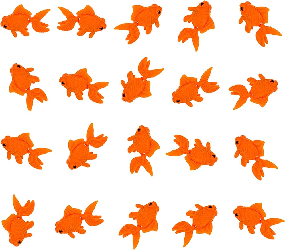 20 Pieces High-quality Material Artificial Fish - lifelike fish ornament aquarium decorations for fish tank. Use them as cake toppers and as undersea party decorations for kids' birthdays. These floating artificial fish will get along well with your real fish in your fish tank. These realistic aquarium fishes will be nice choice to create a beautiful aquarium for you. An ideal choice for birthday gift, children party favor, Christmas presents, home party supplies or outdoor-fun. Package includes: 20 * Fake Goldfish
