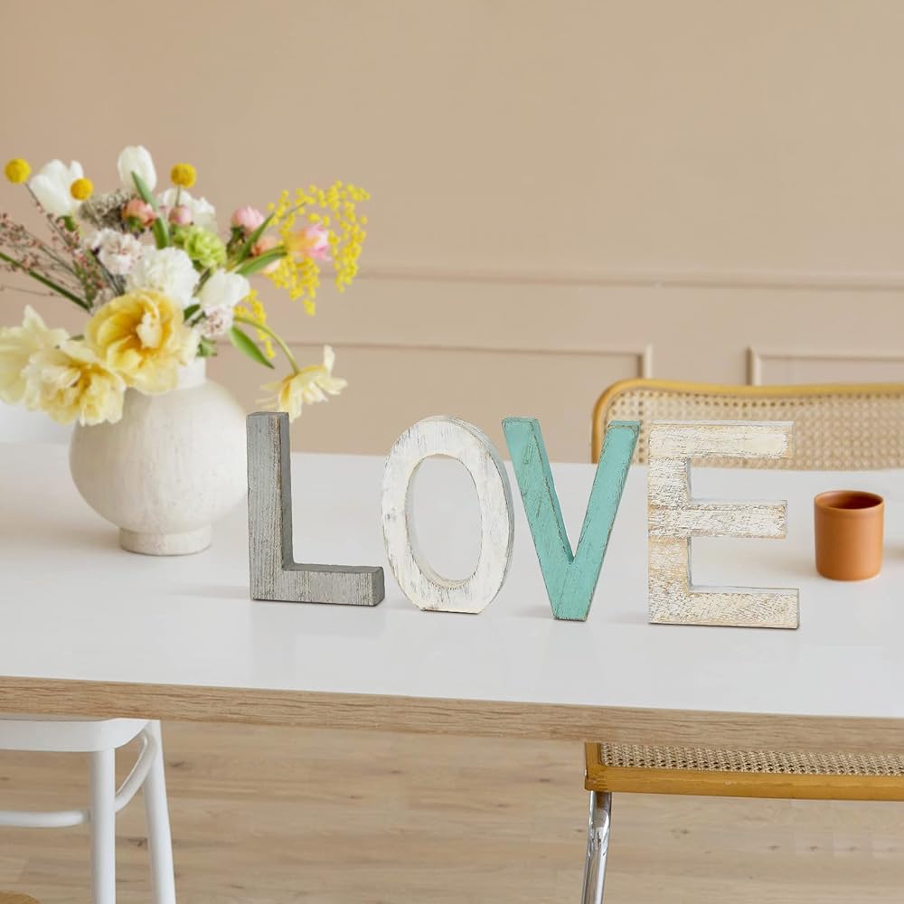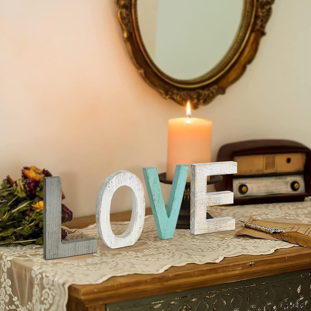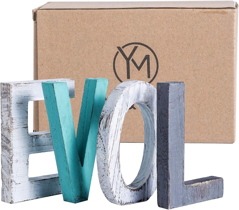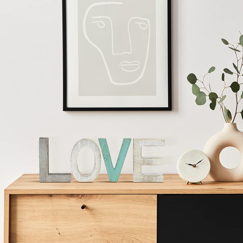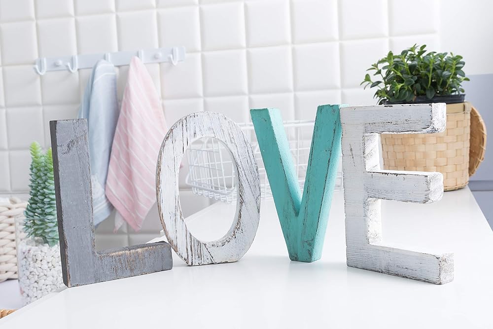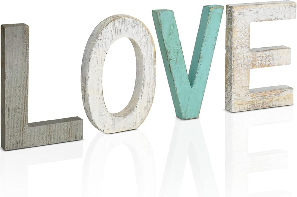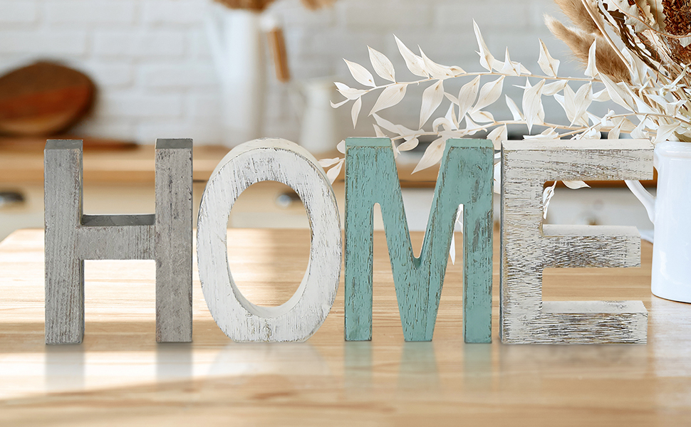 [Convenient Size Wood Home Sign]:Each letter: 5.9 H x4.2 W x 0.8 D,The distressed finish adds a charming antique look to add to the timeless appeal of the sign's simple message, and the multicolor design lends a fun salvaged flair