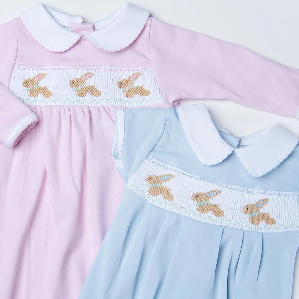 Magnolia Baby Baby Girl Springtime Bunny Classics Smocked Collared Flutters Bubble Pink