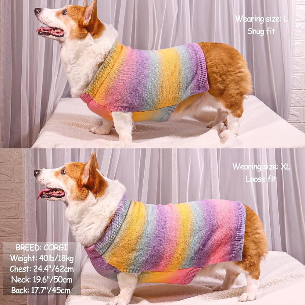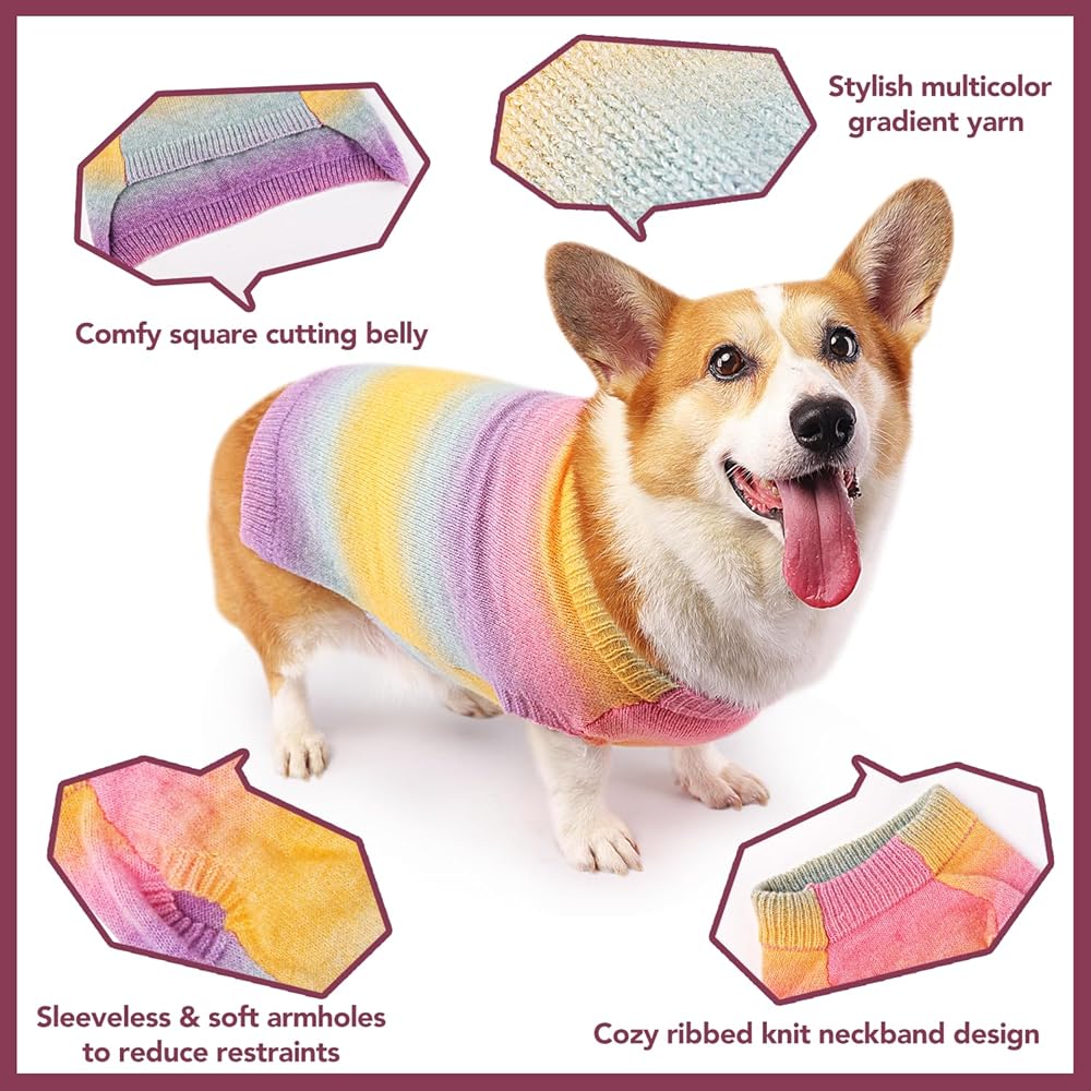[Exclusive Design]: Made of multicolor thread, the gradient rainbow pullover is cute for boys and girls for everyday wear or for holidays and events. It's the perfect birthday and Christmas gift for puppy, small and medium doggies such as Shih Tzu, Terrier, Maltese, Bulldog, Chihuahua, Poodle, Dachshund, Pug, Corgi etc., and cats.