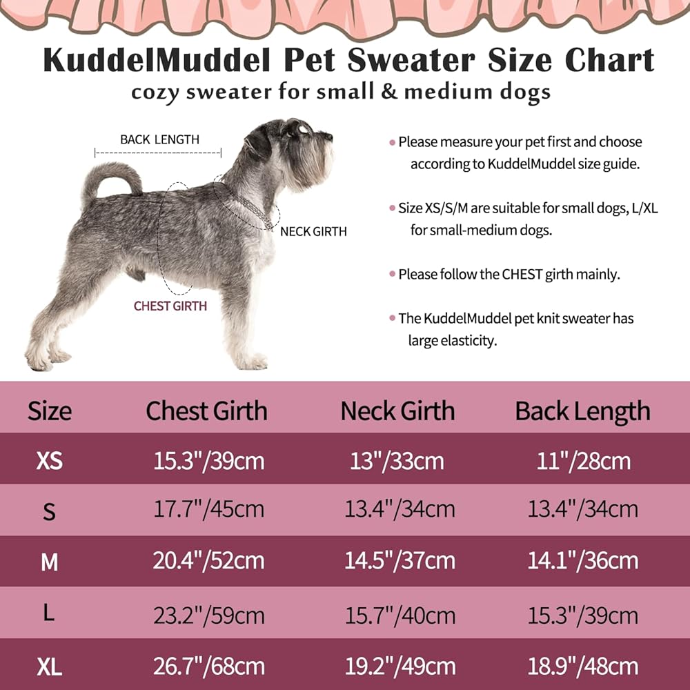 [About Size]: Please measure your pet first and choose based on KuddelMuddel size chart. Refer to CHEST girth mainly. The sweater has large elasticity, so if your pet is between sizes, size up for a loose fit, and size down for a snug fit.