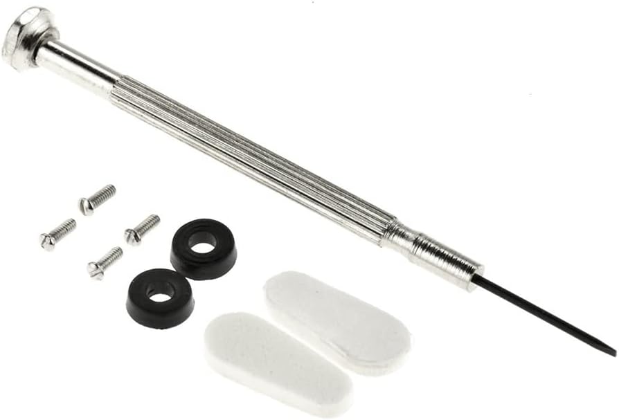 (عبوتان) مجموعة إصلاح النظارات المدمجة مع براغي ومفك براغي (برأس مسطح) ثبت نظارات عينيك المكسورة بسرعة. مجموعة إصلاح النظارات هي مجموعة إصلاح شاملة لجميع إطارات النظارات المكسورة (4) براغي صغيرة (1) مفك براغي زجاجي برأس مسطح (2) حلقات مفصلية (2) وسادات أنف لإصلاح النظارات مع براغي ووسادات أنف لتثبيت نظارات عينيك بنفسك بكل سهولة. تتضمن كل ما تحتاجه لإصلاح أو استبدال براغي إطار النظارات والمفصلات والملاءمة هنا،