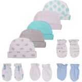 قبعة مستشفى للأطفال حديثي الولادة مصنوعة من القطن الناعم بتصميم أشعة الشمس مكونة من 5 قطع مناسبة للأولاد والبنات (0-6 أشهر)