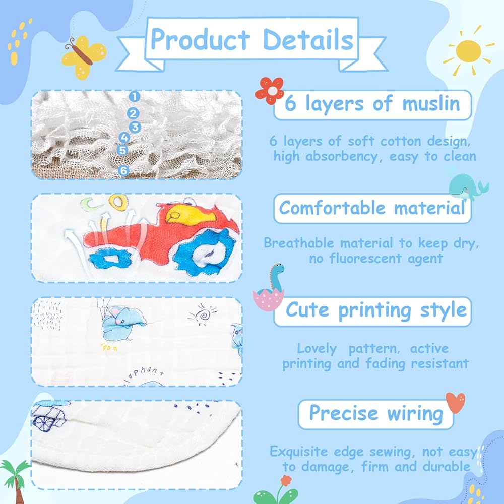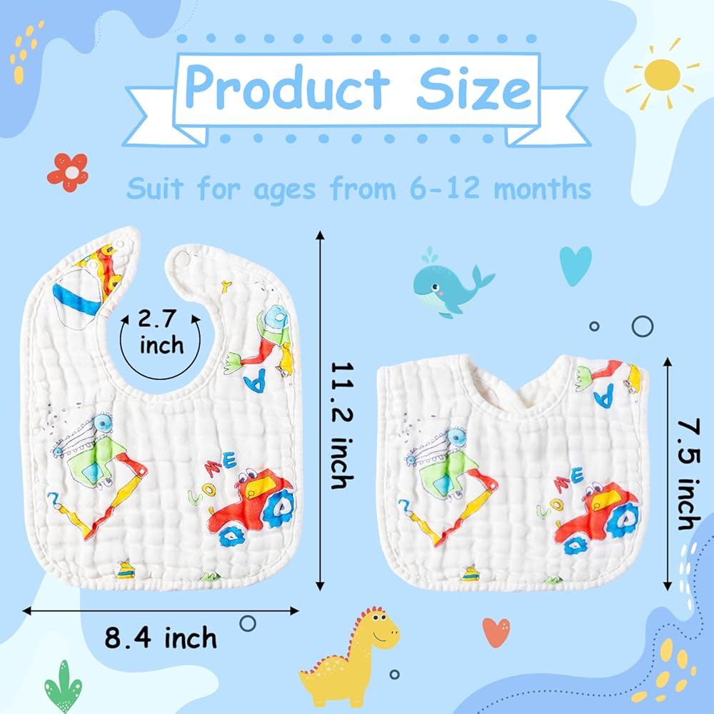 • الحجم المثالي: يبلغ مقاس صدريات الموسلين القطنية حوالي 11.2 × 8.4 بوصة، وهو الحجم المناسب تمامًا لطفلك من عمر 6 إلى 12 شهرًا. كما تم تصميم المريلة بزرين من الراتنج قابلين للتعديل، مما يجعل من السهل عليك ضبط إحكامها وفقًا لاحتياجات طفلك. بالإضافة إلى ذلك، يمكن لف المرايل الماصة لدينا بسهولة ووضعها في حقيبتك دون أن تشغل مساحة كبيرة، مما يجعل من السهل عليك وعلى طفلك استخدامها في الخارج.