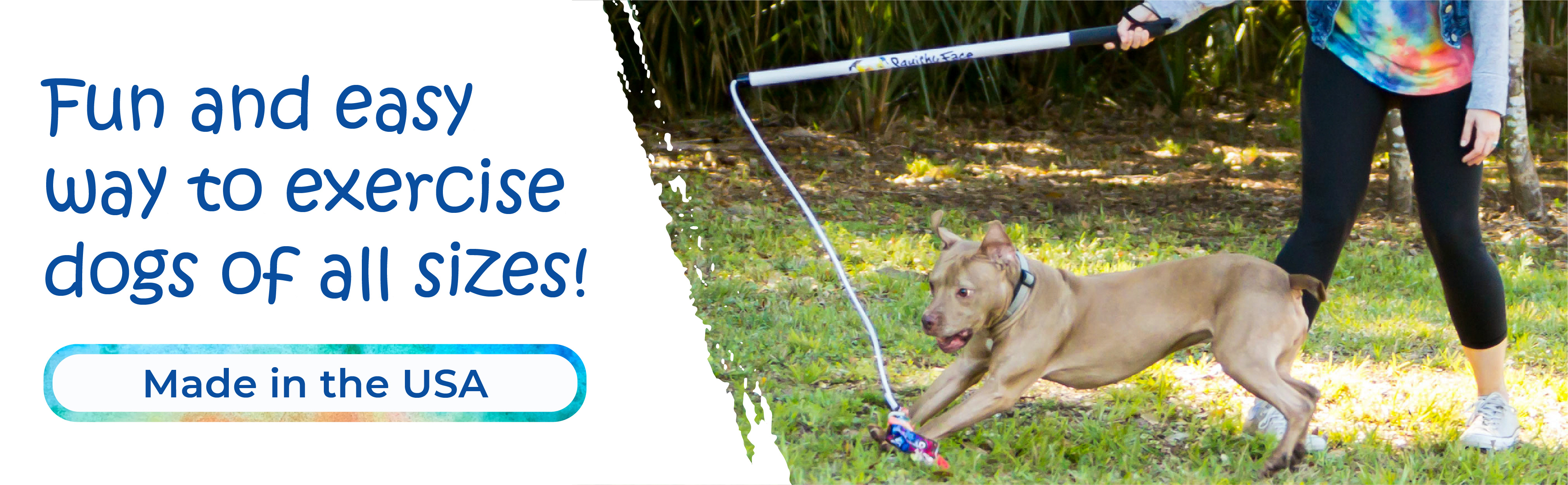 Want An Easy Way To Keep Your Dog Happy And Healthy In Less Than 10 Minutes A Day? In addition to obesity and health concerns, many experts say that lack of exercise is a leading cause of hyperactive and destructive behavior in dogs. Our Flirt Pole V2 is your solution. The only toy on the market that uses bungee cord to prevent "whiplash "when lure is caught. Easily change lures without the use of fasteners that can injure your dog's mouth. The Flirt Pole with the included lure weighs less than one pound. Soft, non-slip grip for easy handling. For The Strong Dog Owner - Finally, A Safe, Easy, And Painless Way To Play Tug-Of-War. Tug-of-war is a game that dogs naturally love to play and can be great exercise. If you have a powerful dog like I do, you know what happens to your arm and shoulder after a few minutes of playing. Ouch! Your solution is our Super Tug toy. Included polyester webbing Tug Toy is soft on your dog's mouth and is safer than rope tugs. 2"wide heavy-duty webbing strap has the strength of chain without causing damage to tree bark. Strap is long enough to wrap around trees up to approximately 94"in circumference. Be sure to watch the videos to see the Flirt Pole V2 and Super Tug in action. With our One Year No Risk , you can return them for any reason within one year of purchasing for a full refund, including shipping costs (if applicable). What are you waiting for. Order yours now!