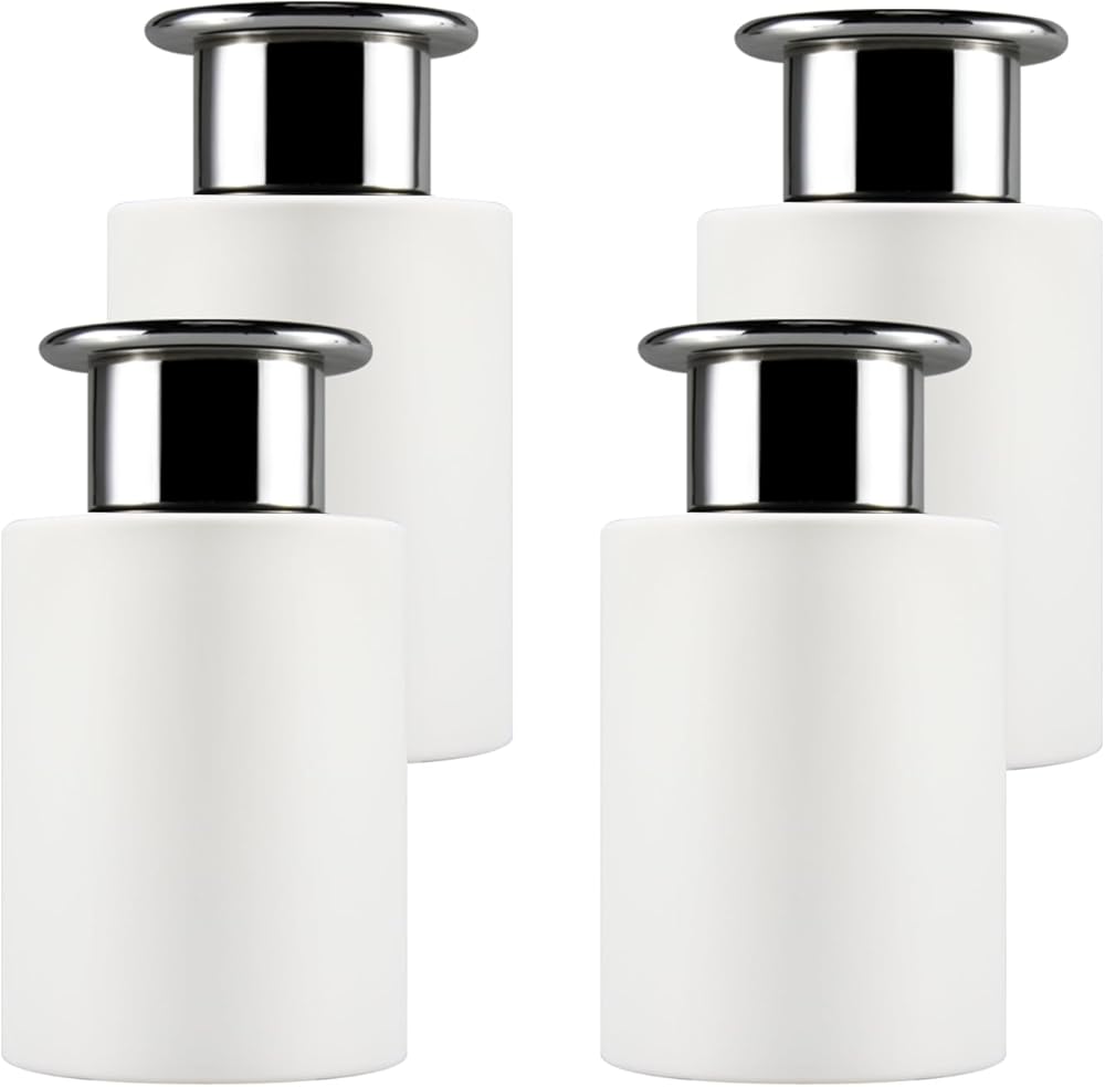 فيل فراجرانس زجاجات موزع زجاجية بيضاء مع اغطية فضية مجموعة من 4 قطع - 4.2 انش ارتفاع، 120 مل 4.2 اونصة، ملحقات العطور تستخدم لمجموعات موزع القصب البديلة التي تصنعها بنفسك.