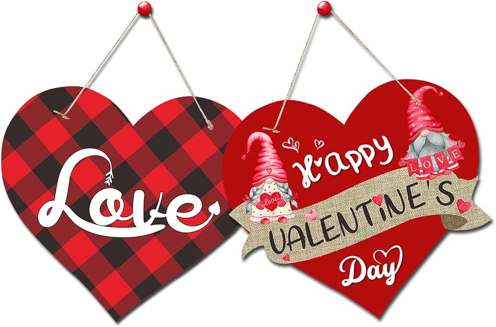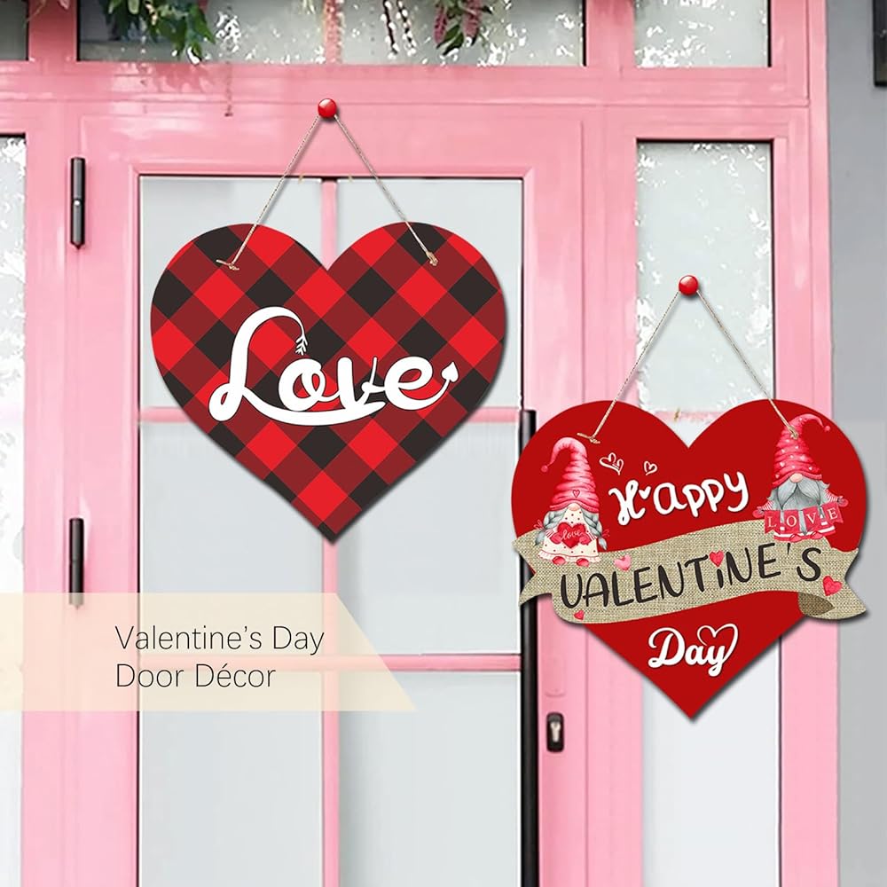 Valentines Day Door Sign, 2 PCS Paper Farmhouse Valentine Hearts Door Hanger Decorations for Front Door Gnome Wall Décor