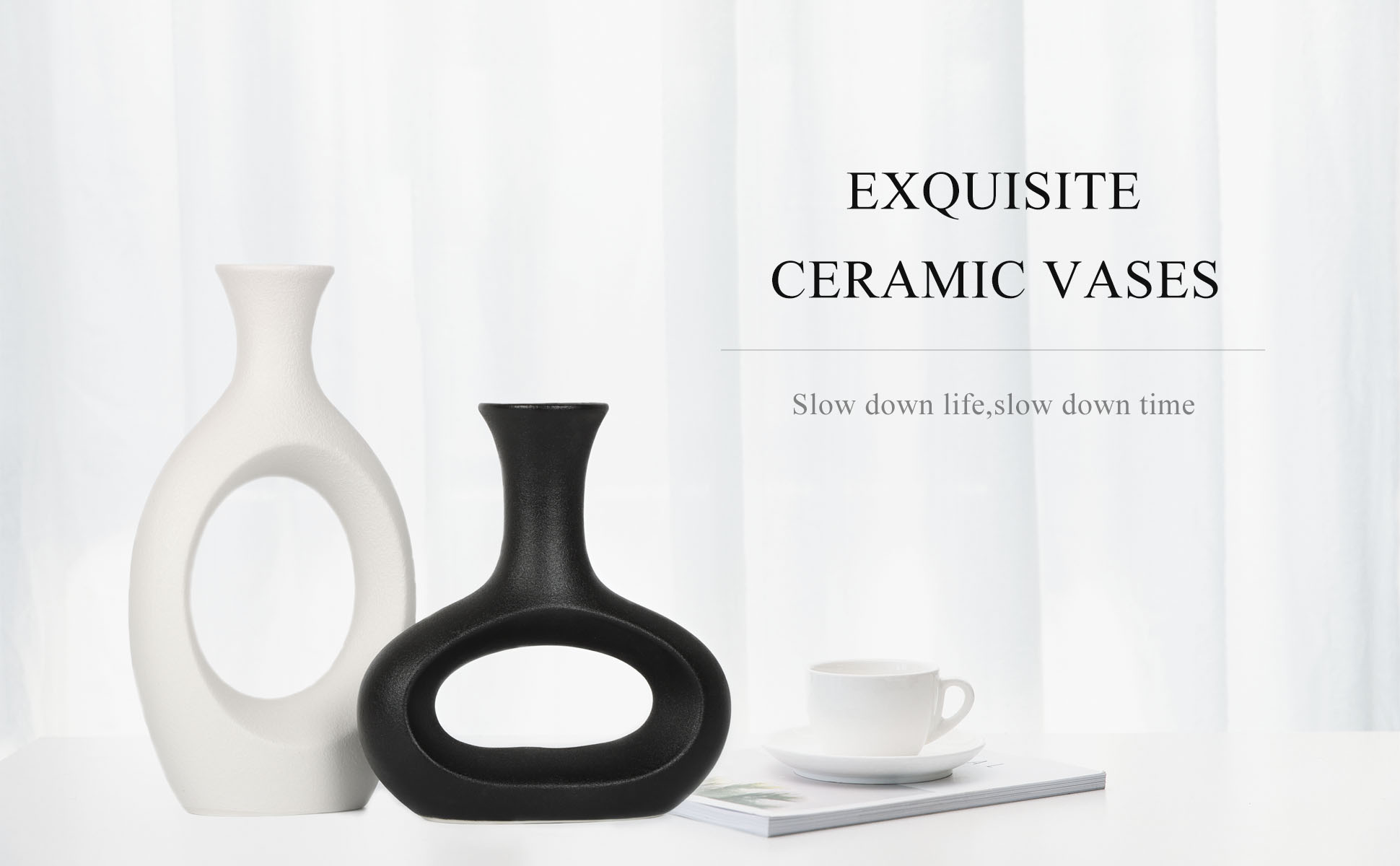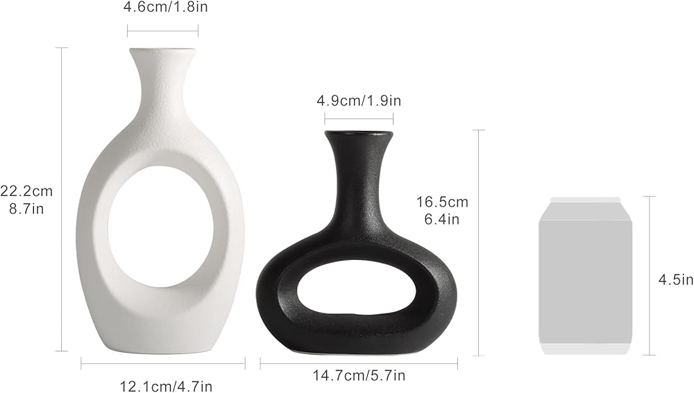 Simple Ceramic Vase Set: measured white vase 1.97 "D x 4.9" W x 8.7 "H; Black vase 2.2 "D x 5.9" W x 6.5 "H) The7boX vase set can be used in many different ways. You can also combine it according to your own preferences, or you can put it alone in any place you want to create a warm and creative space.