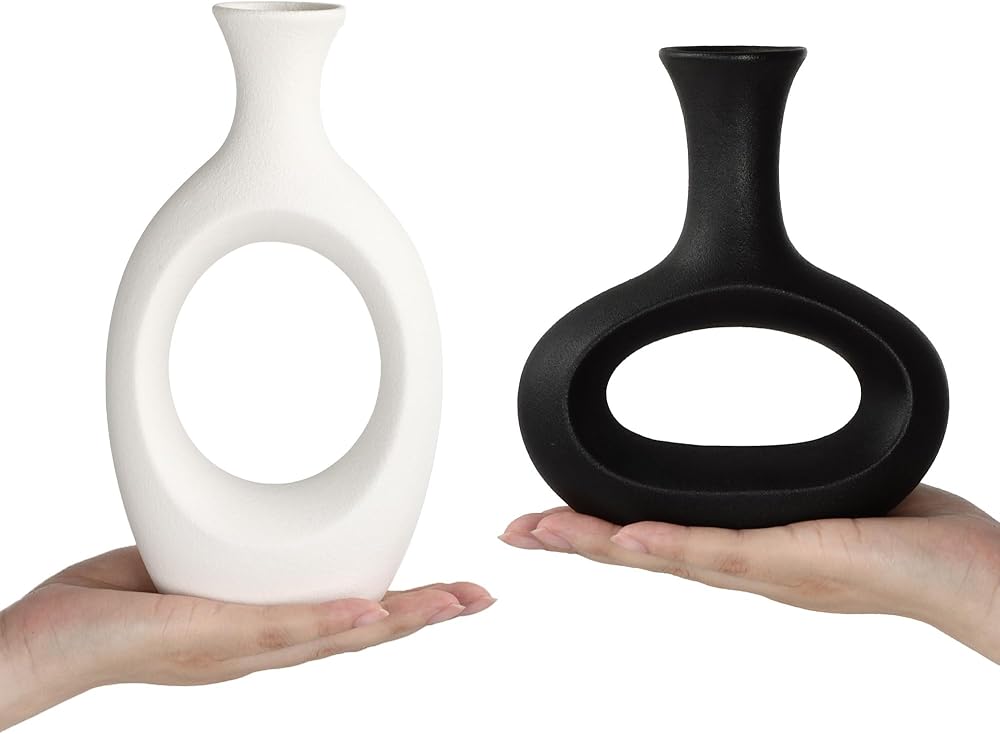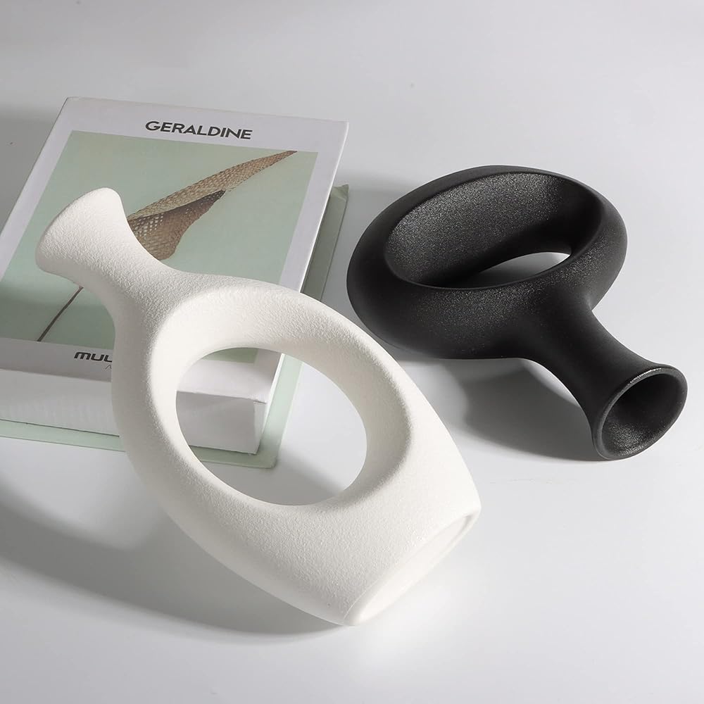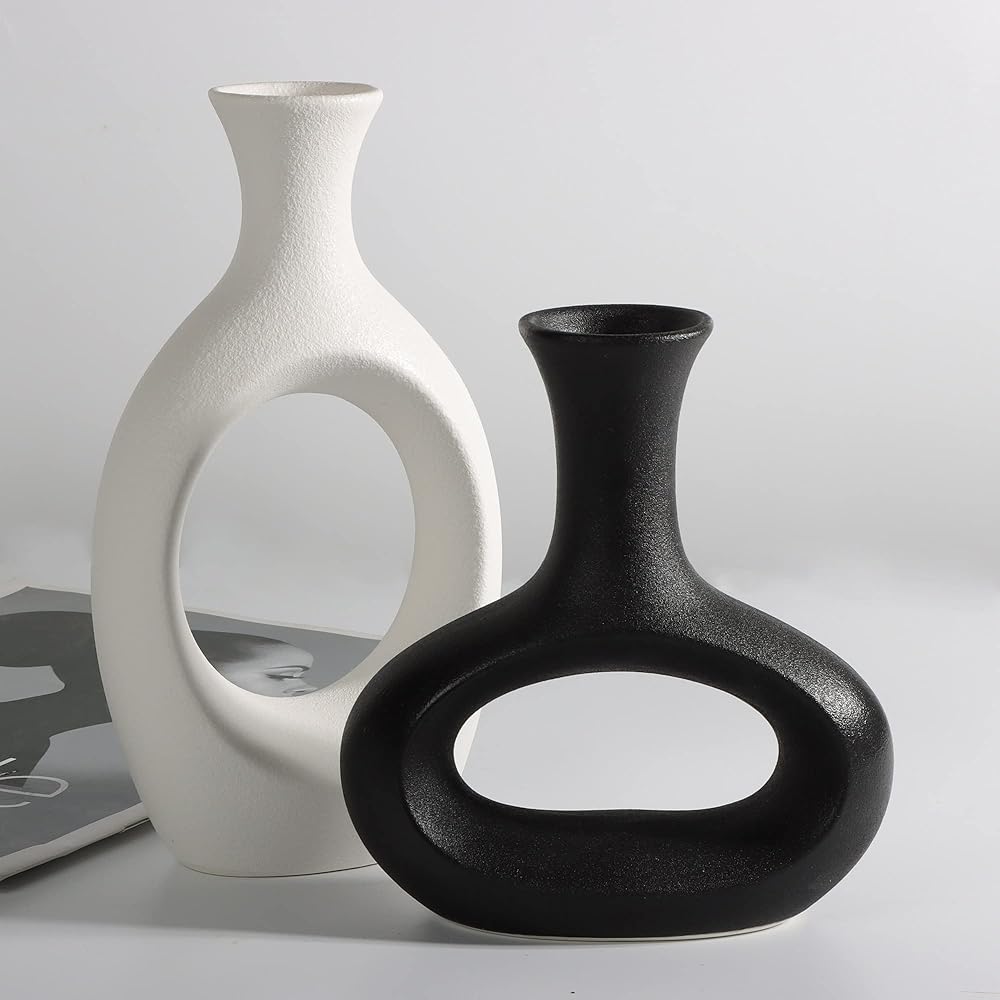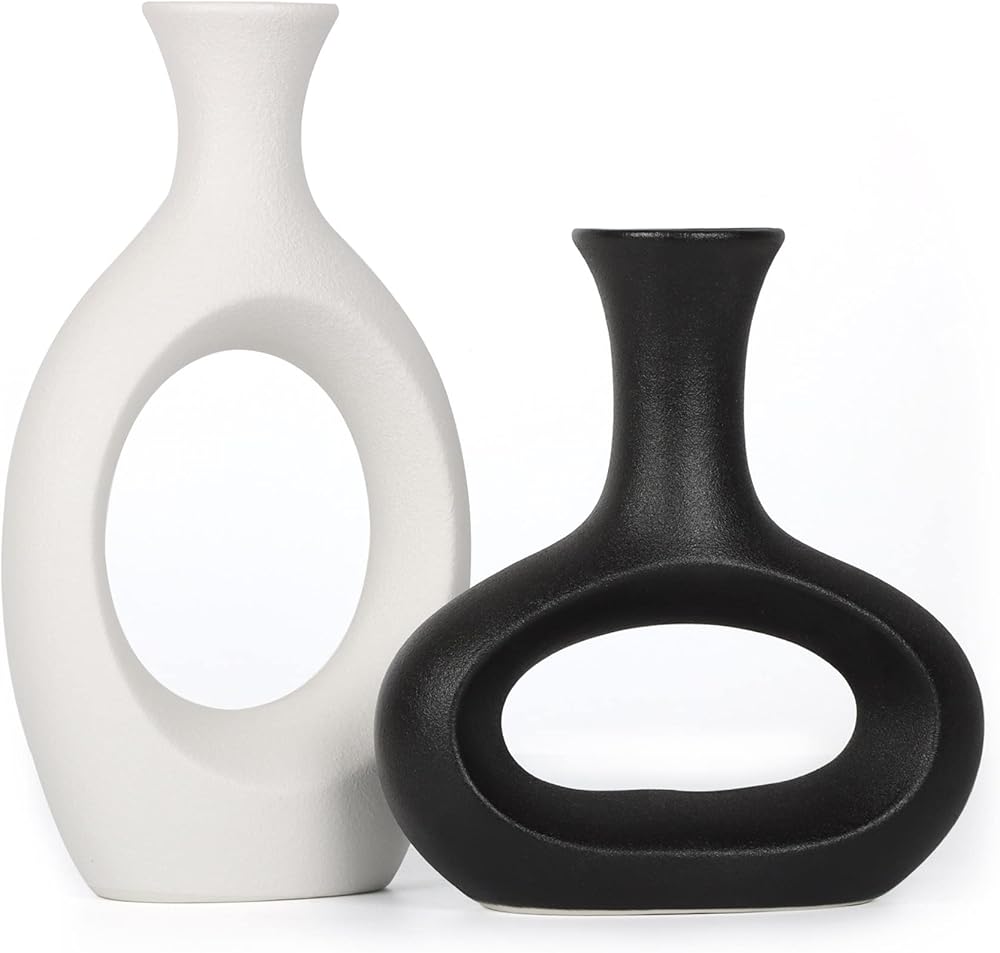 The7boX Black and White Ceramic Hollow Vase Set of 2, Household Decoration Vase Modern Central Decoration Vase for Flowers Green Plants for Living Room Bedroom 8.7''H/6.4''H
