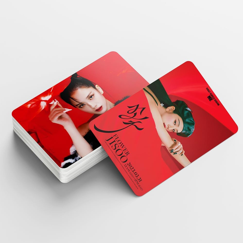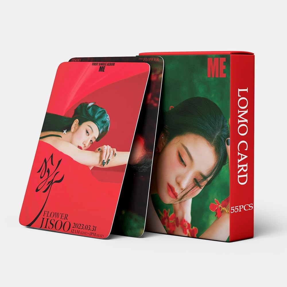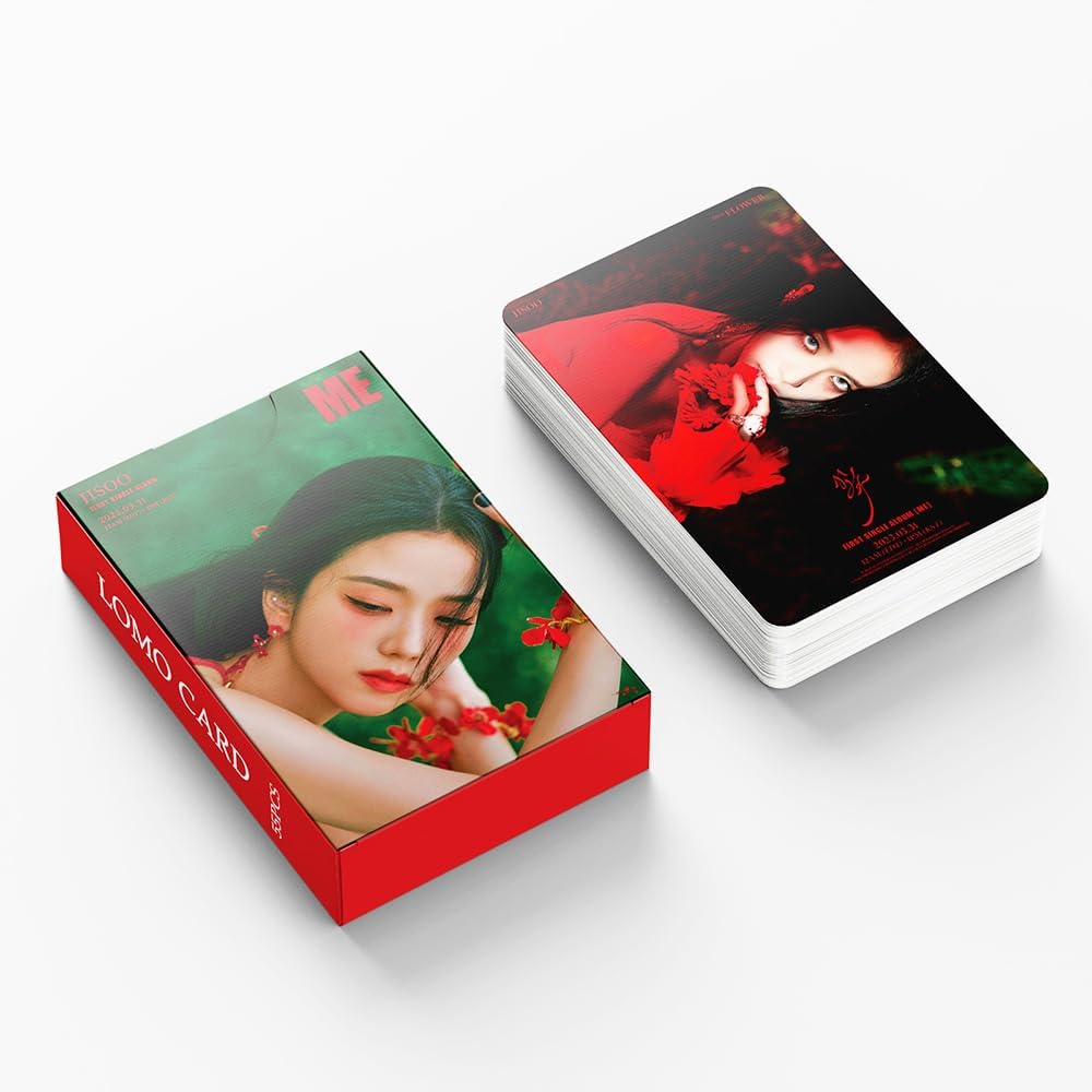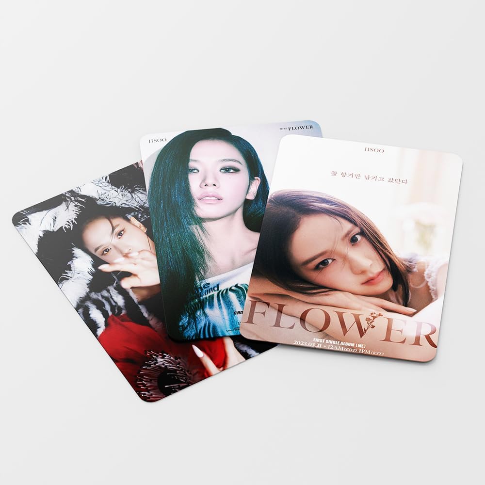 💖High Quality:Made of high definition and high quality material that is durable and exquisite.HD photo printing for fans.You will get 55 Pieces non-repeated JISOO ME FLOWER Mini Photocards.